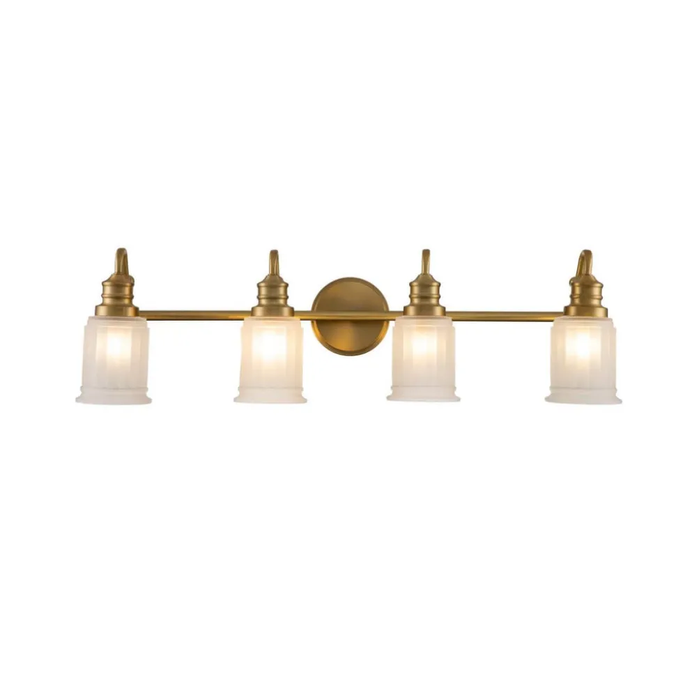 Swell-væglampe med IP44-beskyttelsesgrad, fire lys Swell Bathroom-væglampen med fire lys og IP44-beskyttelsesgrad er designet til montering over spejlet i store badeværelser. Det er en stilfuld amerikansk klassiker, som aldrig går af mode, og som passer til mange stilarter. Armaturet med en lang stang på et rundt vægbeslag er udstyret med fire skærme af satineret glas med en smuk form, som er jævnt fastgjort til buede beslag. De satinerede skærme skaber meget behagelige lysforhold foran spejlet takket være deres ensartede og blændfri lysfordeling. G9-fatningerne i skærmene kan monteres med lyskilder på op til 3,5 W (LED-lamper – medfølger ikke)