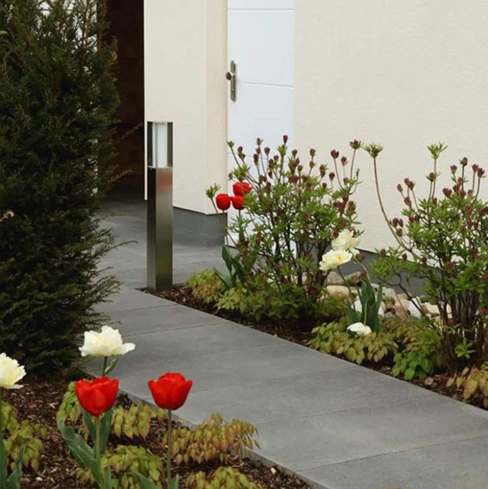 Den elegante vejlampe Tunuk i stål sætter nye trends. Den smalle, sølvfarvede lampe er 90 cm høj og 10 cm bred og lang. Men Tunuk ser ikke kun flot ud, den bidrager også til sikkerheden på din grund. Den elegante lampe spreder lyset i alle retninger, så der sikres en omfattende belysning. Der kan også bruges LED- eller sparepærer. Den smagfulde lampe Tunuk er fra en tysk producent, der fremstiller sine værdibevarende lamper af høj kvalitet udelukkende i Tyskland.