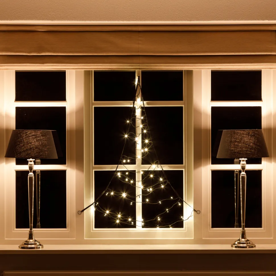 På ingen tid kan vinduer pyntes effektivt indefra eller udefra med denne smukke juletræssilhuet. Denne vidunderlige juledekoration er lavet af elastisk stofbånd og kan nemt fastgøres ved hjælp af sugekopper. Der er installeret varm hvide LED’er for at skabe en stemningsfuld atmosfære. Udstyret med et langt forsyningskabel.