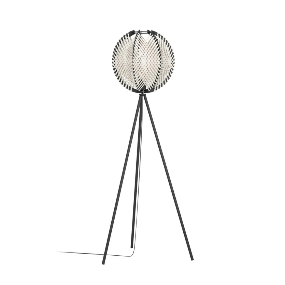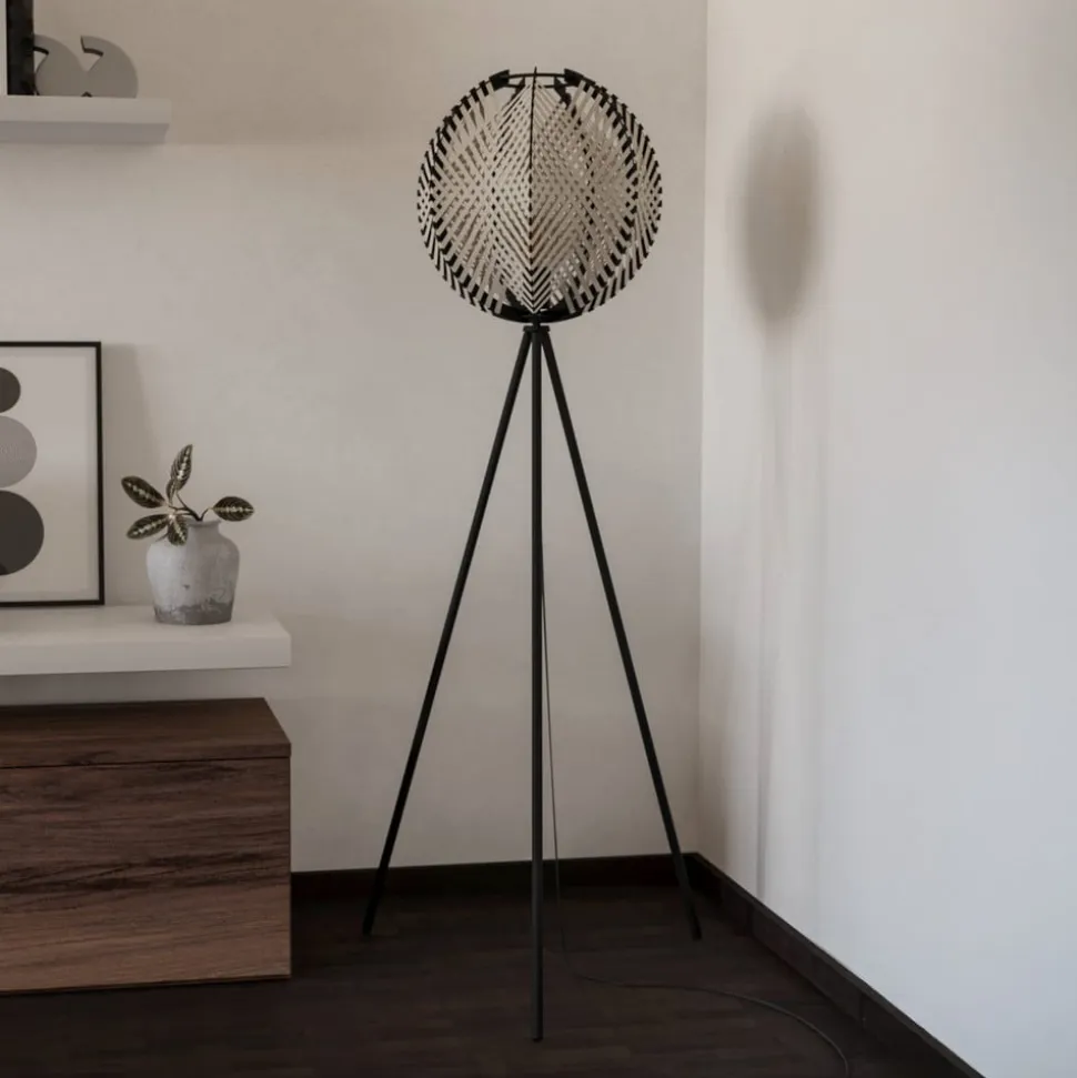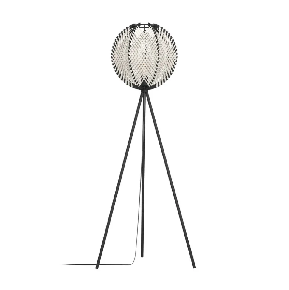 Waverton trebenet gulvlampe med effektivt skærmdesign Waverton-gulvlampen er et praktisk belysningselement til hjemmet. Skærmen er pakket ind i et beige tekstilbånd, der skaber en smuk lyseffekt, når den er tændt. Den sorte træramme giver lampen et naturligt præg, og det sorte PVC-kabel passer perfekt ind i designet. Denne lampe tilbyder en kombination af funktionalitet og enkel æstetik, der passer godt ind i forskellige indretningsstile. Udstyret med en fodkontakt på kablet.