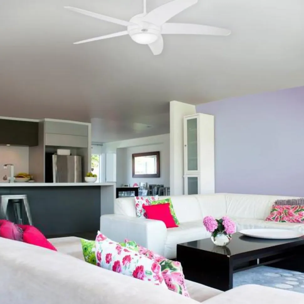 Moderne elegance kendetegner udseendet af denne hvide loftventilator, der med en diameter på 132 cm kan friske luften op i et rum på 25 kvadratmeter. Bendan er desuden udstyret med en enkeltlampe med opal glasafskærmning, hvor der kan monteres en R7-pære med maks. 80 watt, som skaber en stemningsfuld belysning i rummet. Forlængerstang medfølger.