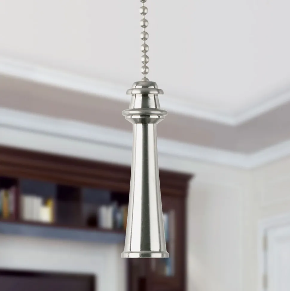Den dekorative trækkæde er udstyret med en pokal i børstet nikkel, og forsynet med en 30,5 cm lang perlekæde.