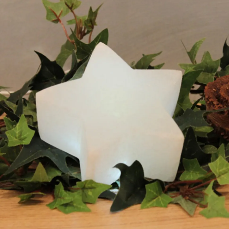 I vindueskarmen, på et sidebord, på en hylde eller på en skænk er den hvide stjerne af saltkrystalsten en smuk dekoration, der er oplyst indefra af en LED. På grund af stjerneformen er saltkrystallampen også et smukt blikfang i juletiden