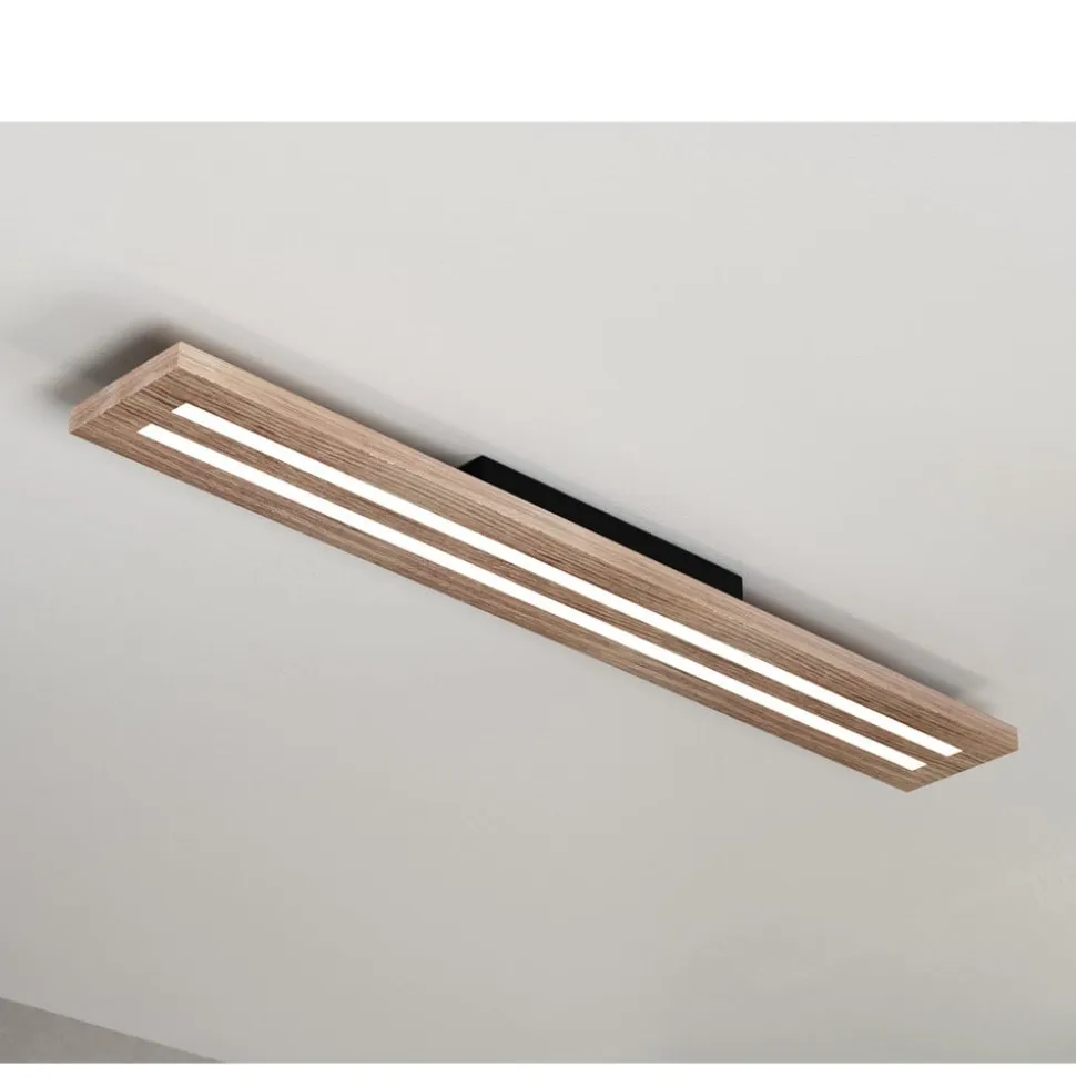 Woody LED-loftlampe, længde 80 cm, eg/sort, 3.000 K