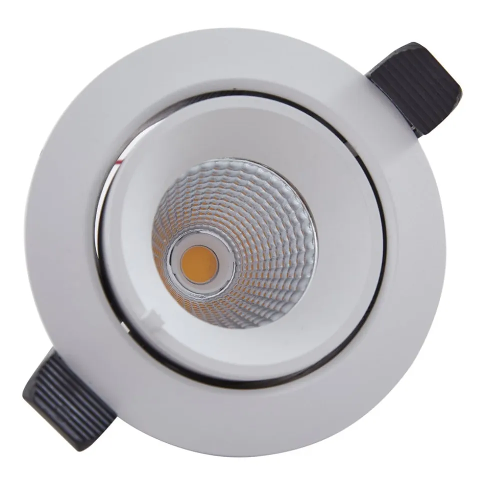 Justerbar Harcos LED-indbygningslampe i hvid, Ø 11 cm Den runde, hvide Harcos LED-downlight er det perfekte valg, hvis du er på udkig efter moderne belysning, der også har noget teknisk at byde på. Med en farvetemperatur på 4.000K giver Harcos et behageligt lys til koncentreret arbejde. Den høje farvegengivelse og justeringsmulighederne er yderligere HighLights, mens den integrerede LED-lyskilde garanterer en lang levetid og høj lysstyrke. Takket være det enkle design passer det meget flade indbygningsarmatur problemfrit ind i ethvert interiør og sætter stilfulde accenter – Justerbar – Kan både drejes og svinges