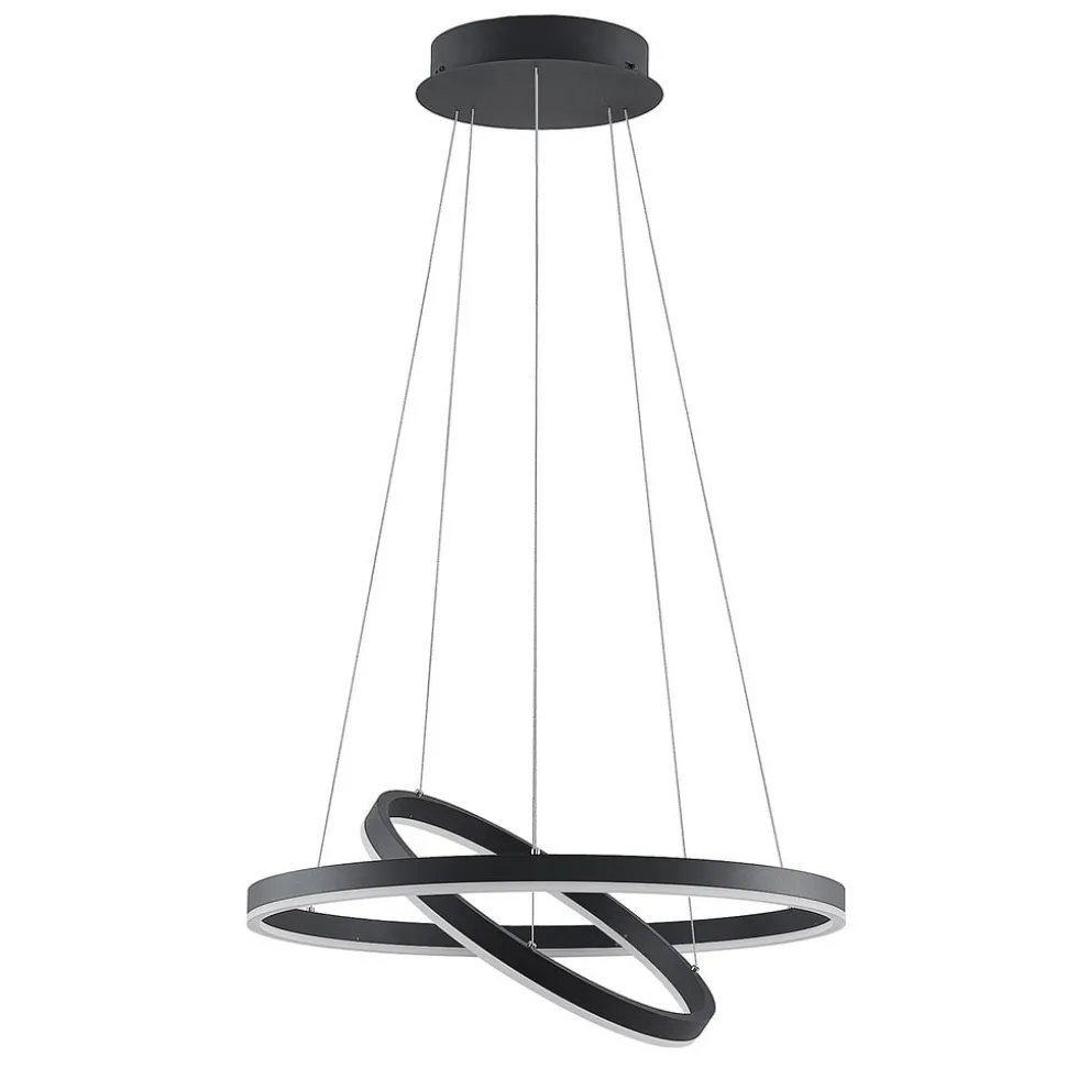 Arcchio LED-hængelampe Albiona, sort, 2 ringe, Ø 60 cm