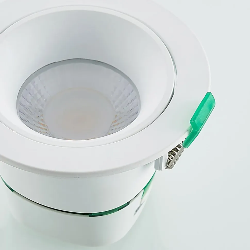 Katerin er en svingbar, dæmpbar LED-indbygningsspot med hvid ramme og rund form, hvor lysfarven kan indstilles