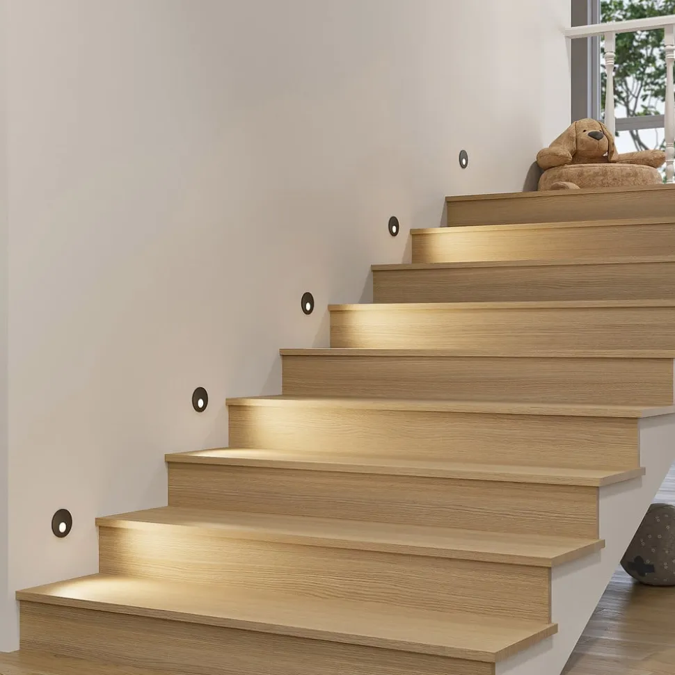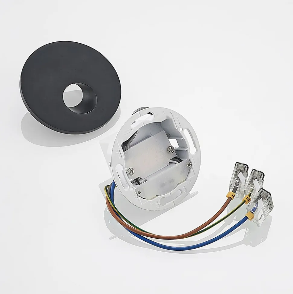 Rund LED-vægindbygningslampe Vexi i sort aluminium Vexi imponerer med sit enkle og kompakte design. Den er lavet af aluminium og har en sort overflade. Når den er installeret, forsvinder lampekroppen ind i væggen og efterlader kun en slank, rund plade. Armaturet har en dip-switch på bagsiden, som kan bruges til at indstille lysfarven (2.700 K, 3.000 K og 4.000 K). Det enkle design af Vexi LED-vægindbygningslampen passer ubesværet ind i en bred vifte af indretningsstile og kan kombineres med andre lamper i serien efter behov. Så hvis du er på udkig efter en enkel væglampe, der er ideel til belysning af en trappe eller korridor, vil du ikke blive skuffet over Vexi – CCT – med god farvegengivelse – mulighed for gennemfortrådning Lampen installeres i standard hulmursdåser (indbygningsdåser) med en diameter på 68 mm.