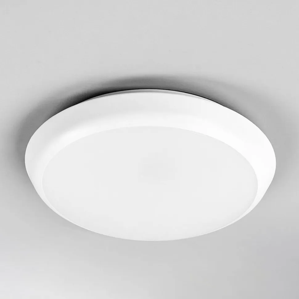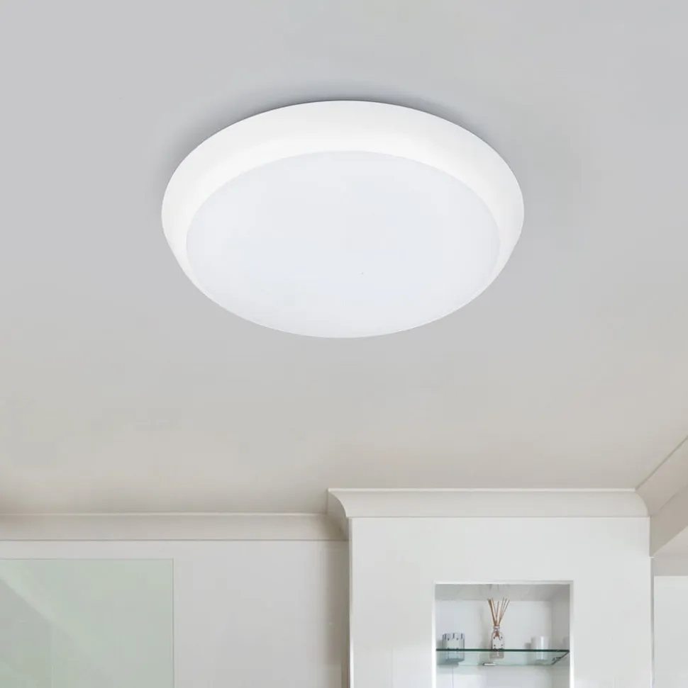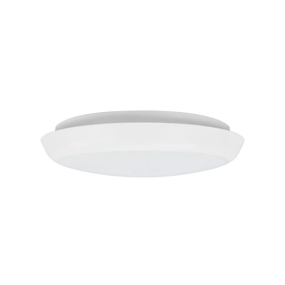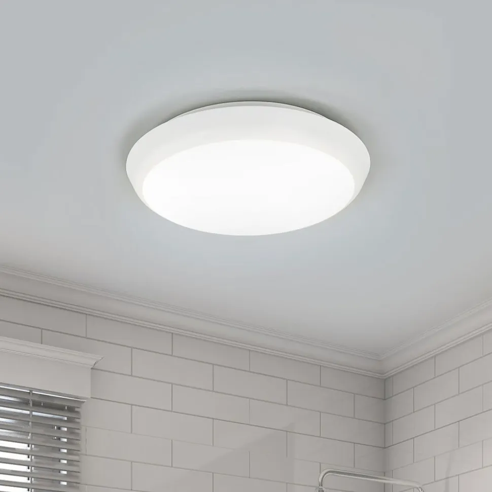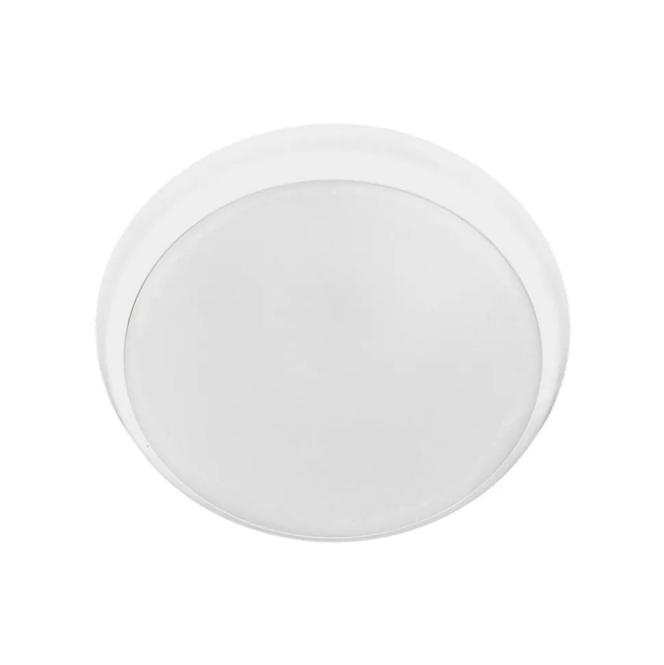 Enkel LED-loftlampe Augustin i rund form, ideel til vådrum Diameteren på denne LED-loftlampe er relativt kompakt, hvilket gør den velegnet til brug i mange rum. Rammen er hvidmalet, og skærmen er også almindelig hvid, hvilket sikrer en ensartet lysfordeling. Bag skærmen gemmer sig de lyse, universalhvide LED’er, som er meget energieffektive og hurtigt vil vinde indpas hos moderne forbrugere. Ideel til badeværelser og andre fugtige rum.