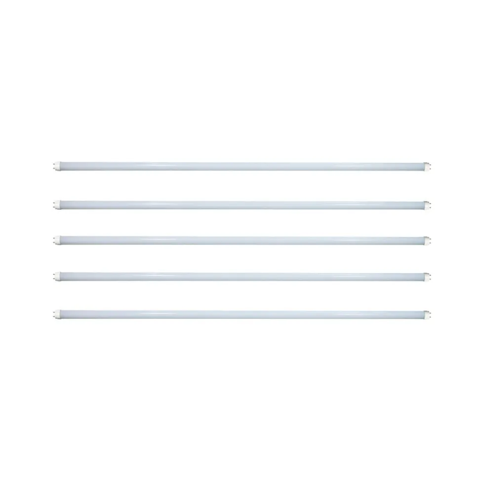 pakke med 5 LED-lysstofrør G13 T8 11,5 W, universalhvid Et opalt LED-lysstofrør fremstillet af glas. Ikke-dæmpbar, lyser med en klar lysfarve og har en længde på 120 cm. Leveres i et praktisk sæt med 5 stk. – passer til KVG, VVG forkoblinger – leveres med startbro – praktisk sæt med 5 stk