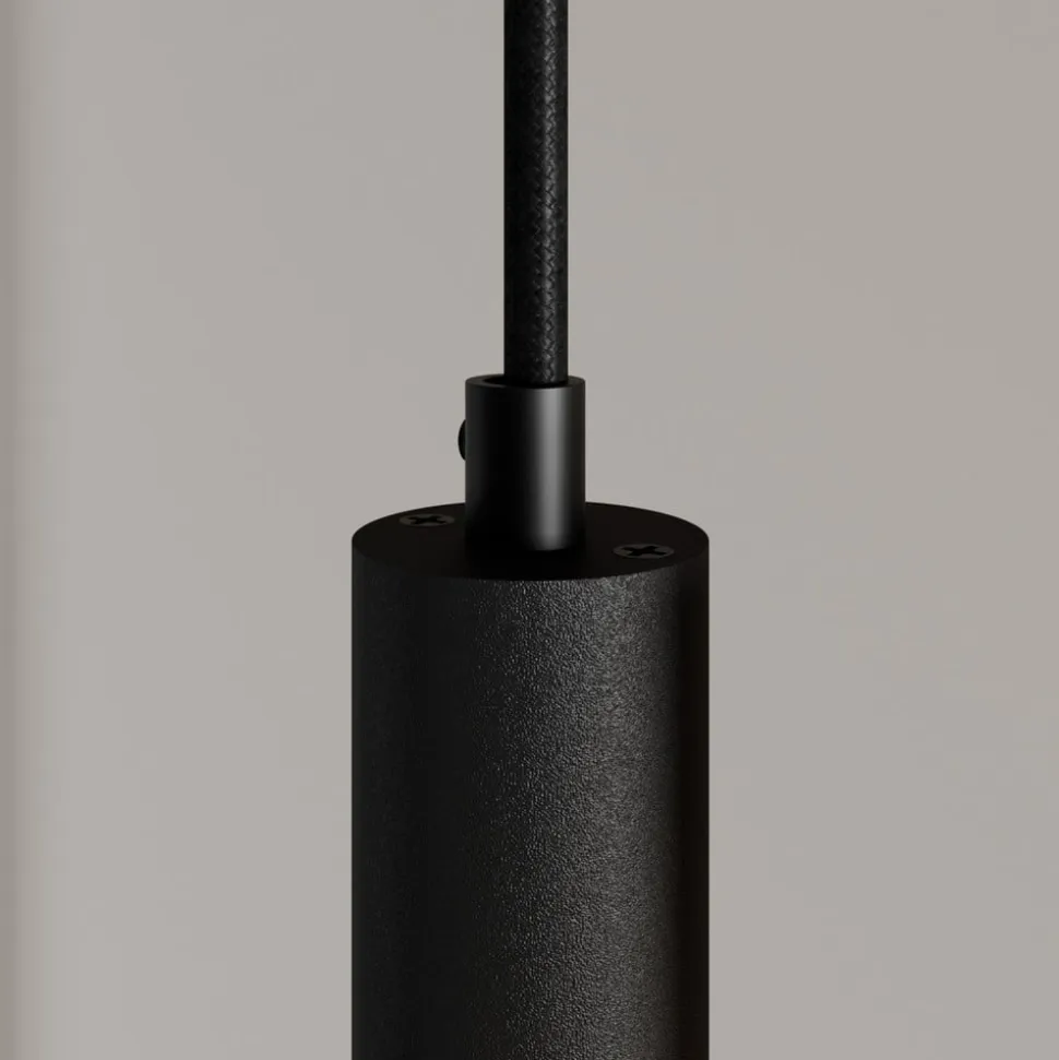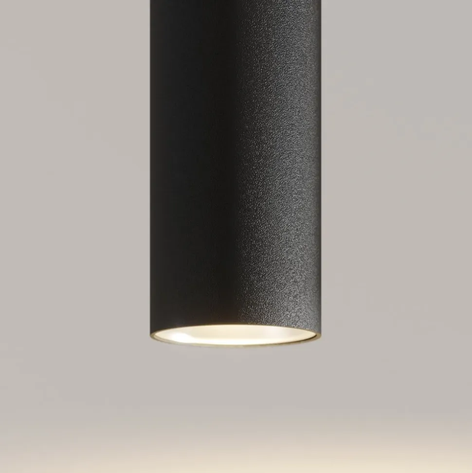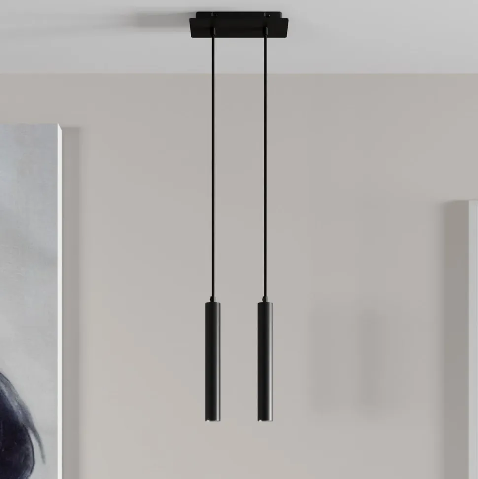 2 lyskilder Franka LED-pendellampe med sorte aluminiumscylindre som skærme – ideel til skranker og spiseborde Denne pendellampe er et smukt blikfang, som er særligt velegnet til bord- eller skrankebelysning. De to skærme er meget slanke, runde og lavet af aluminium. En sort overfladefinish fuldender det overordnede design på en æstetisk, sofistikeret måde og spotlighter en kølig elegance. Samlet set passer Franka godt til moderne interiør, og med sin varmhvide lysfarve er armaturet perfekt til opholdsrummet og hyggelig belysning af forskellige rum. De to skærme udsender et ret spotformet lys med en strålevinkel på 24 grader. Takket være LED-pendellampen er strømforbrug og lysstyrke kombineret for at skabe god effektivitet. En høj IK08-slagfasthedsklassificering gør Franka-pendellampen til et robust armatur, som du kan have glæde af i lang tid – SDCM < 5