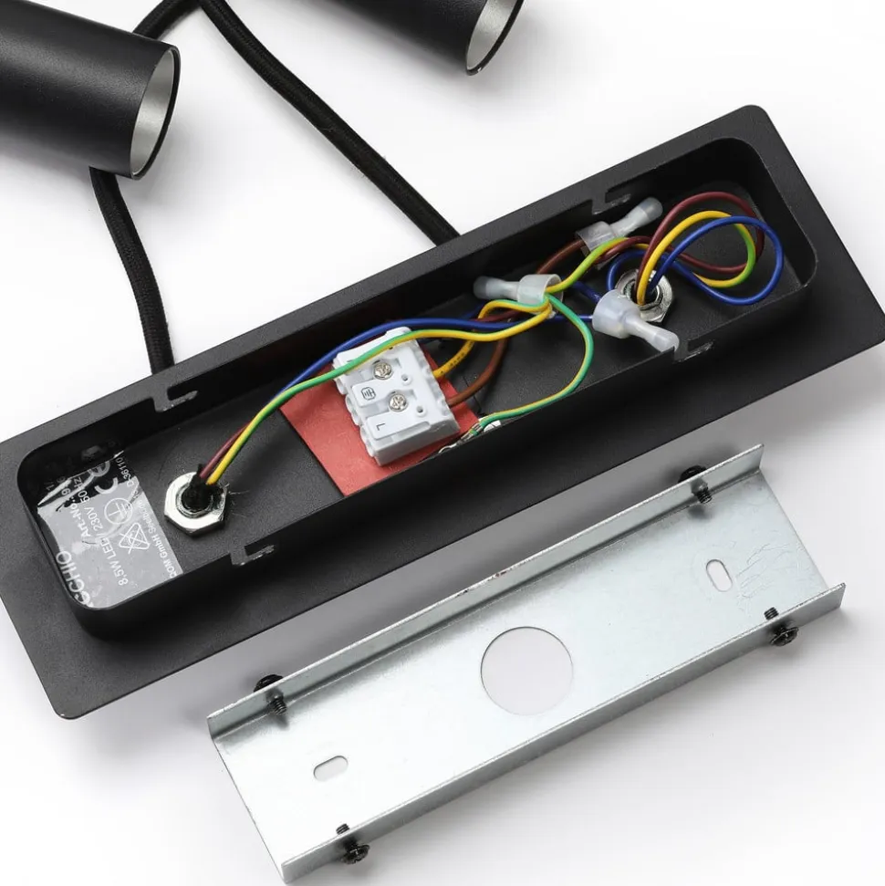 - Loftbeslag – længde 25 cm, bredde 8 cm, højde 2,6 cm; skærm – Ø 3,9 cm, højde 30 cm