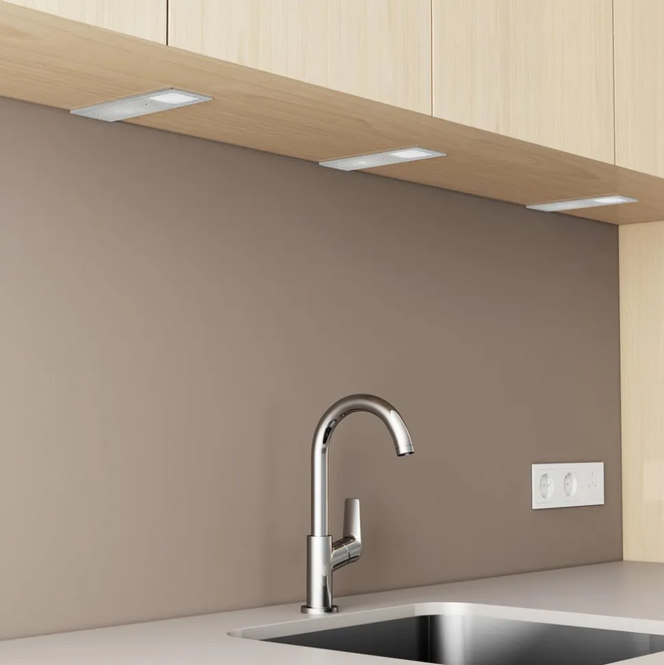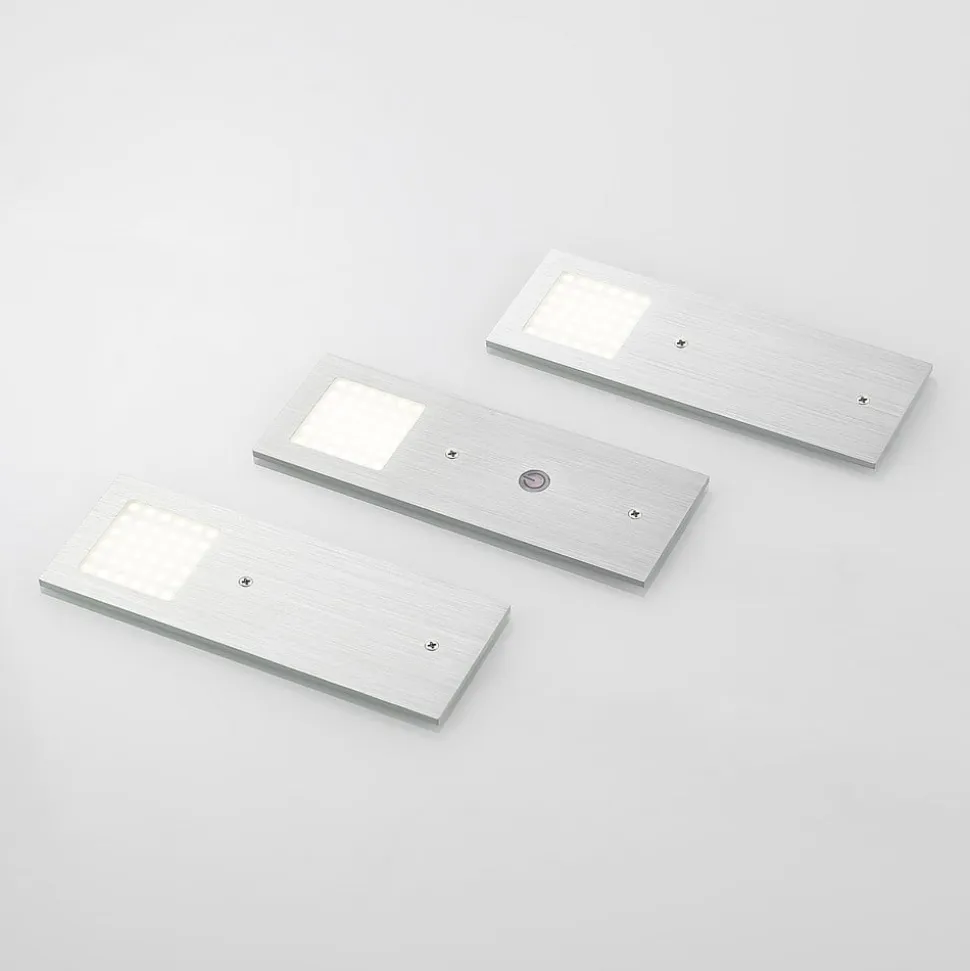 LED-aluminiumsunderbordslamper Nortra i praktisk sæt med tre, kantet form, dæmpbar via touchfunktion