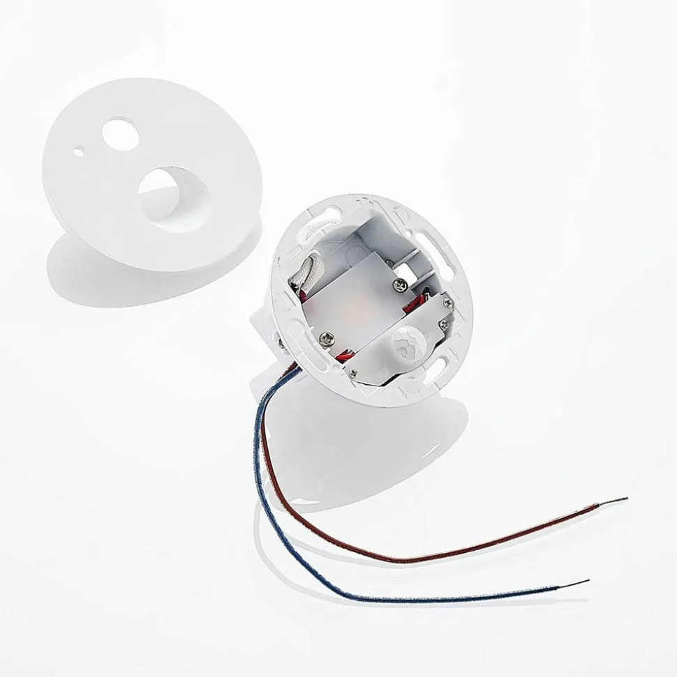 Hvidt LED-indbygningsarmatur Neru i aluminium i rundt design med praktisk bevægelsessensor