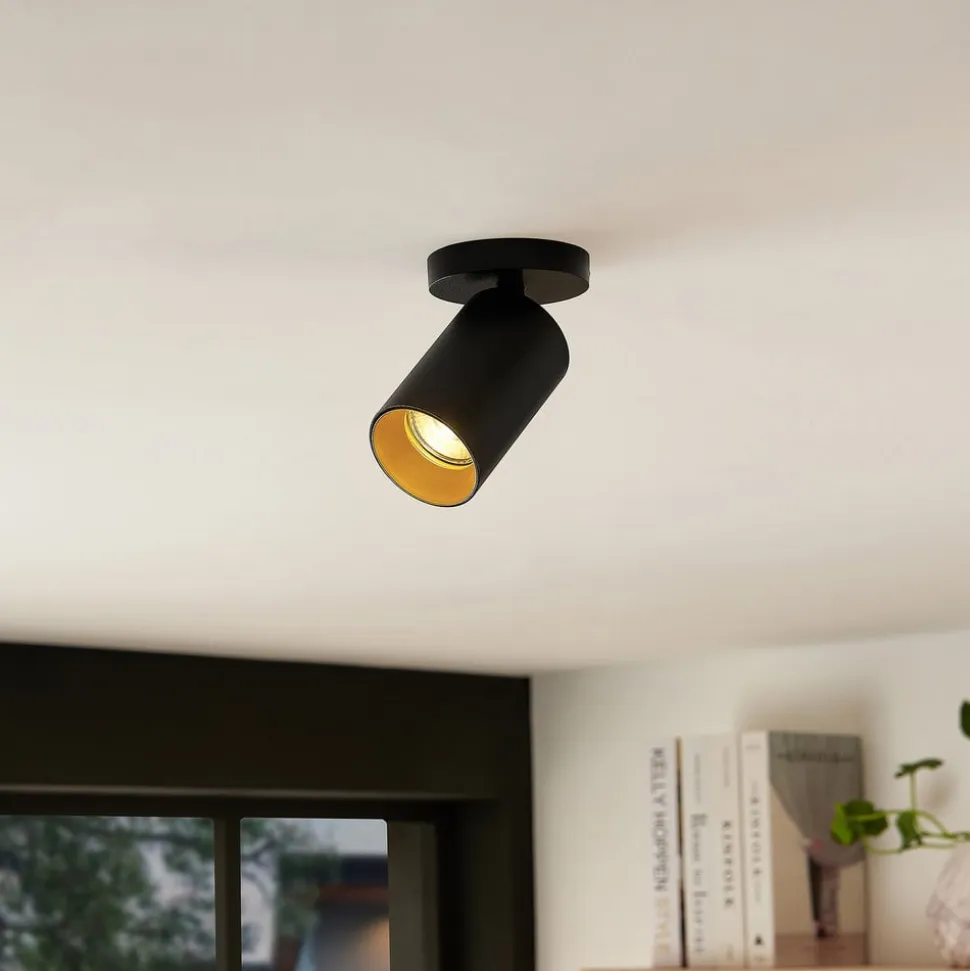 Både den cylindriske lampehoved og den runde loftsbeslag er lavet af aluminium og har et klassisk sort finish. Det giver spotlightet et markant og moderne udseende. Brinja er en smuk lyskilde til privat og erhvervsmæssig brug. Der medfølger en sort og en guldfarvet dekorring til spotlightet.