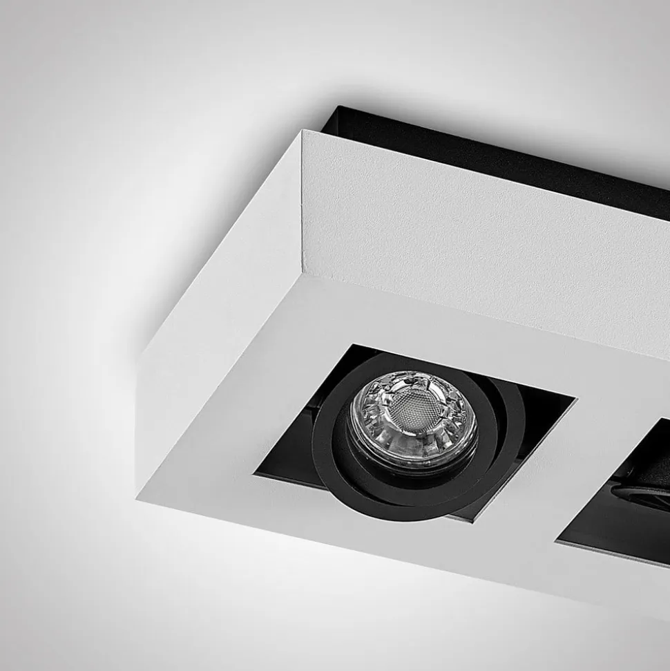 Aflang Vince-loftlampe med fleksible lyskilder Den lige Vince LED-loftlampe imponerer over hele linjen med sit funktionelle design og enkle look i hvid, som passer ind i næsten ethvert interiør. De fire GU10-lyskilder er arrangeret i en række og spotlighter direkte nedad uden at blænde. Alternativt kan lysretningen justeres, så den passer til individuelle behov, da spotlightenes hældningsvinkel kan justeres fleksibelt. Dette armatur er også ideelt til kommercielle formål, da det kan fremhæve visse objekter på en stilfuld og energibesparende måde. Det er særligt effektivt, når det kombineres med andre lamper fra samme serie – med skrueløs hurtigkoblingsklemme af høj kvalitet (holdbar, sikker og værktøjsfri fjedermekanisme)