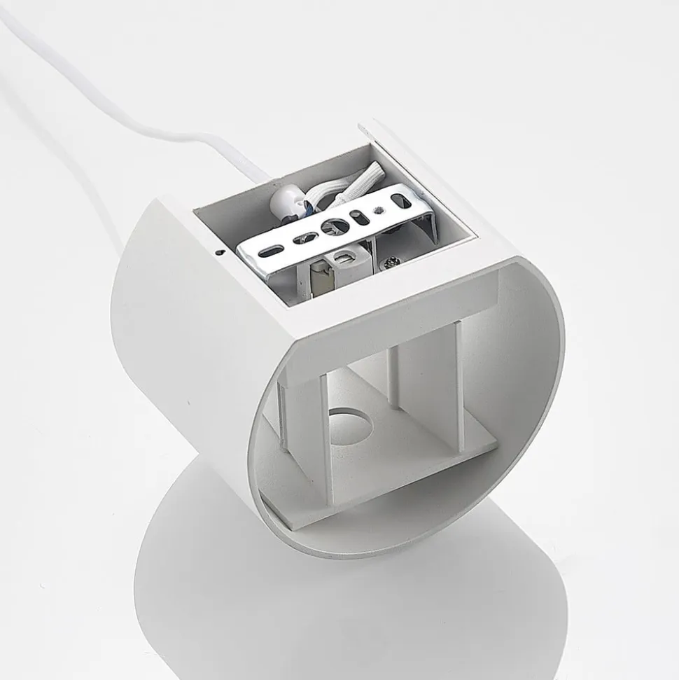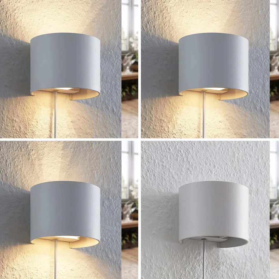 Rund væglampe Zuzana af aluminium i hvid med stik Denne væglampe bringer en hyggelig atmosfære ind i dit hjem og kan nemt betjenes ved hjælp af kontakten på stikket. Denne lampe bringer Arcchios kvalitet ind i dit hjem. Den er fleksibel i brug, kan nemt placeres i ethvert rum og kommer i en hvid farve. Den moderne lampe er designet i en rund form. Den er også udstyret med en G9-fatning. Denne lampe kan bruges til at fuldende dine egne fire vægge.