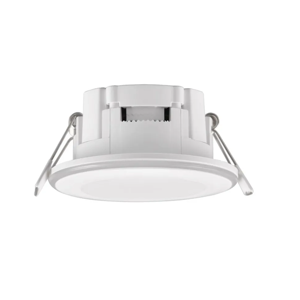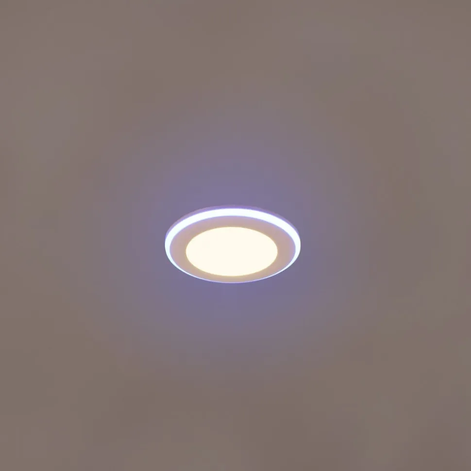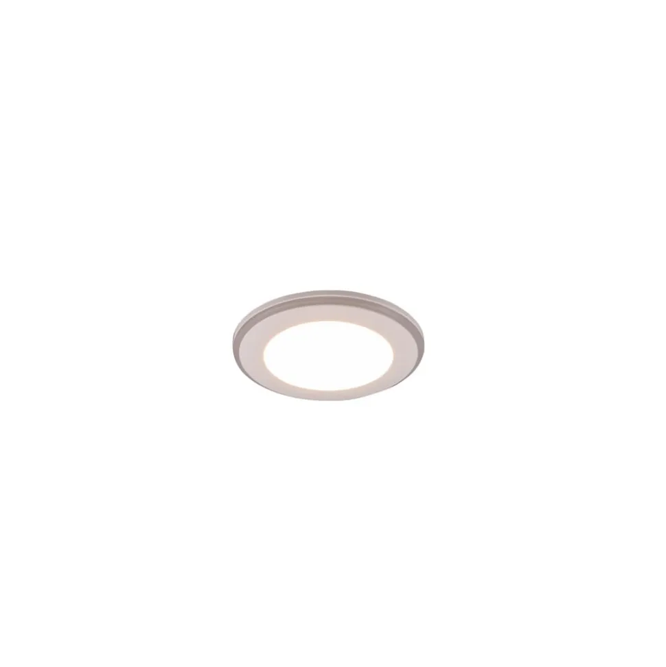 Rund Argus LED indbygningsdownlight, lysfarve og lysstyrke kan styres med fjernbetjening Argus LED indbygningsloftarmatur i plast har en varmhvid hovedlyskilde og en sideintegreret ring med ekstra LED’er, der kan tændes separat og lyse i forskellige farverige nuancer. Tænding, valg af lysfarve og dæmpning sker med den medfølgende fjernbetjening (inkl. 1 x CR2025-batteri). Den tilbyder også fire forudkonfigurerede lysscener.