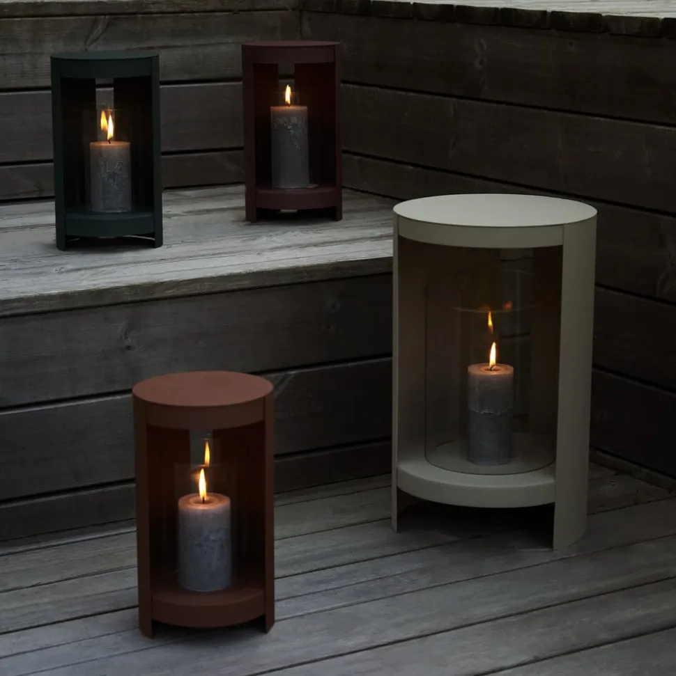 - Til LED-fyrfadslsys og bloklys med en Ø på op til 7 cm. Fremstillet af aluminium og glas. Også egnet til udendørs brug.