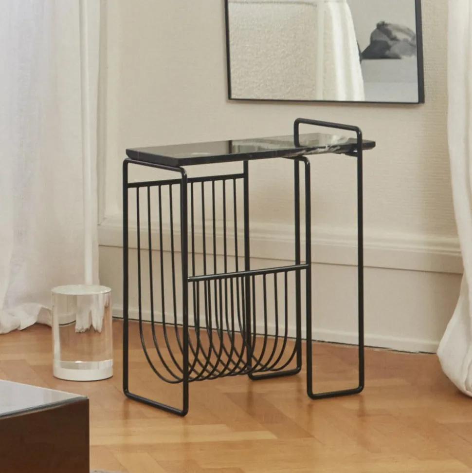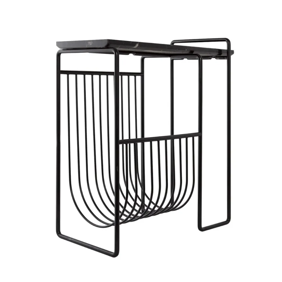 Sino magasinholder i marmor og stål Med Sino magasinholder får du også et lille, stilfuldt sidebord, som er perfekt til at stå ved siden af sofaen med en kop kaffe eller andet godt og tage en kort pause. Den integrerede magasinholder betyder, at du altid har dine yndlingsbøger og -magasiner lige ved hånden, mens stålrammen afrundes af en bordplade i marmor. Resultatet er den elegante allrounder Sino. produktinformation: Fremstillet af 100 % marmor og stål med gummifødder. Maksimal belastningskapacitet 5 kg. plejeinstruktioner: For at fjerne snavs og støv skal du tørre emnet af med en fugtig klud. Marmor tåler ikke syrer eller sure rengøringsmidler som f.eks. eddike. Sørg for at tørre sure og normale væsker, der spildes på overfladen, af med det samme for at undgå pletter.
