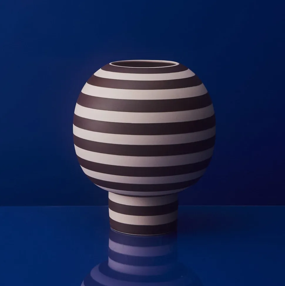 Vase og skulptur i ét: Varia keramikvase Indviklede linjer, forskellige former og levende farver gør livets rejse interessant, og det er, hvad du får med Varia-vasen. De forskellige vaser i denne serie fra AYTM kan også bruges som urtepotter og er et ægte blikfang i dit hjem med deres fantastiske stil og egenart. De levende farver i kombination med de usædvanlige former forstærkes yderligere af det stribede mønster. Vaser som disse ser godt ud sammen, men kan også tiltrække opmærksomhed hver for sig. Produktinformation: Fremstillet af keramik. Plejeanvisning: Tør genstanden af med en fugtig klud for at fjerne snavs og støv. Tør om nødvendigt efter med en blød, tør klud.