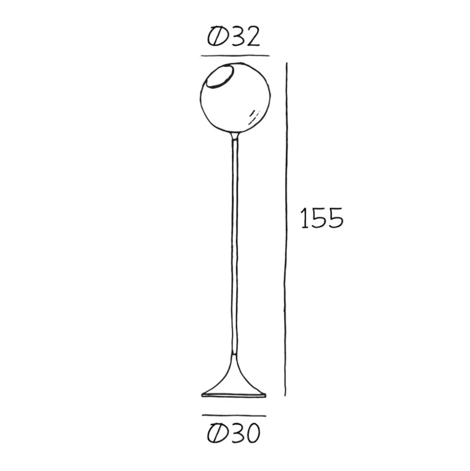 Integreret lysdæmper: Ballroom gulvlampe med mundblæst glasskærm Den kunstfærdigt designede Ballroom gulvlampe fra DESIGN BY US er et velkomment highlight overalt. Basen er lavet af monokromt malet jern. Herpå troner den kugleformede skærm af mundblæst, håndmalet glas. En E27-pære (medfølger ikke, se tilbehør) passer ind i skærmen. En mat hvid pære anbefales også til den hvide version, mens en pære med synlige glødetråde bør vælges til alle andre farvevarianter, da pæren kan ses gennem glasskærmen. Du bør altid vælge en dæmpbar lyskilde, da det er muligt at regulere lysets intensitet ved hjælp af kontakten, der er integreret i stikket. Ballroom-gulvlampen er altid et elegant designobjekt, selv når lyset ikke er tændt. Bemærk: Hver håndblæst glaslampe er unik. Inklusioner i glasset (bobler) på op til 0,5 cm i størrelse er mulige.