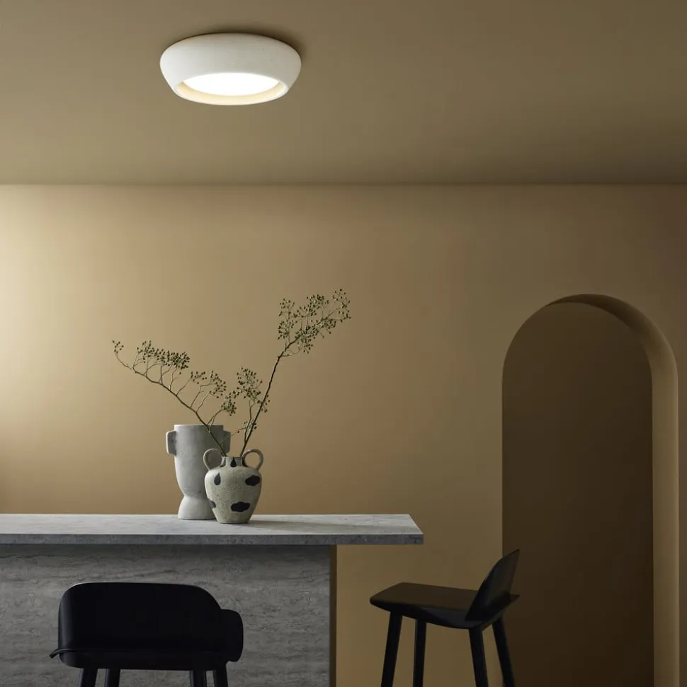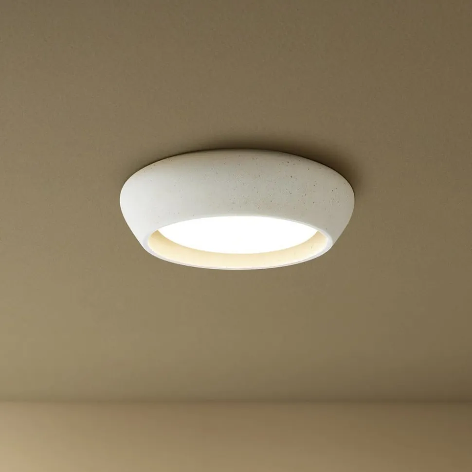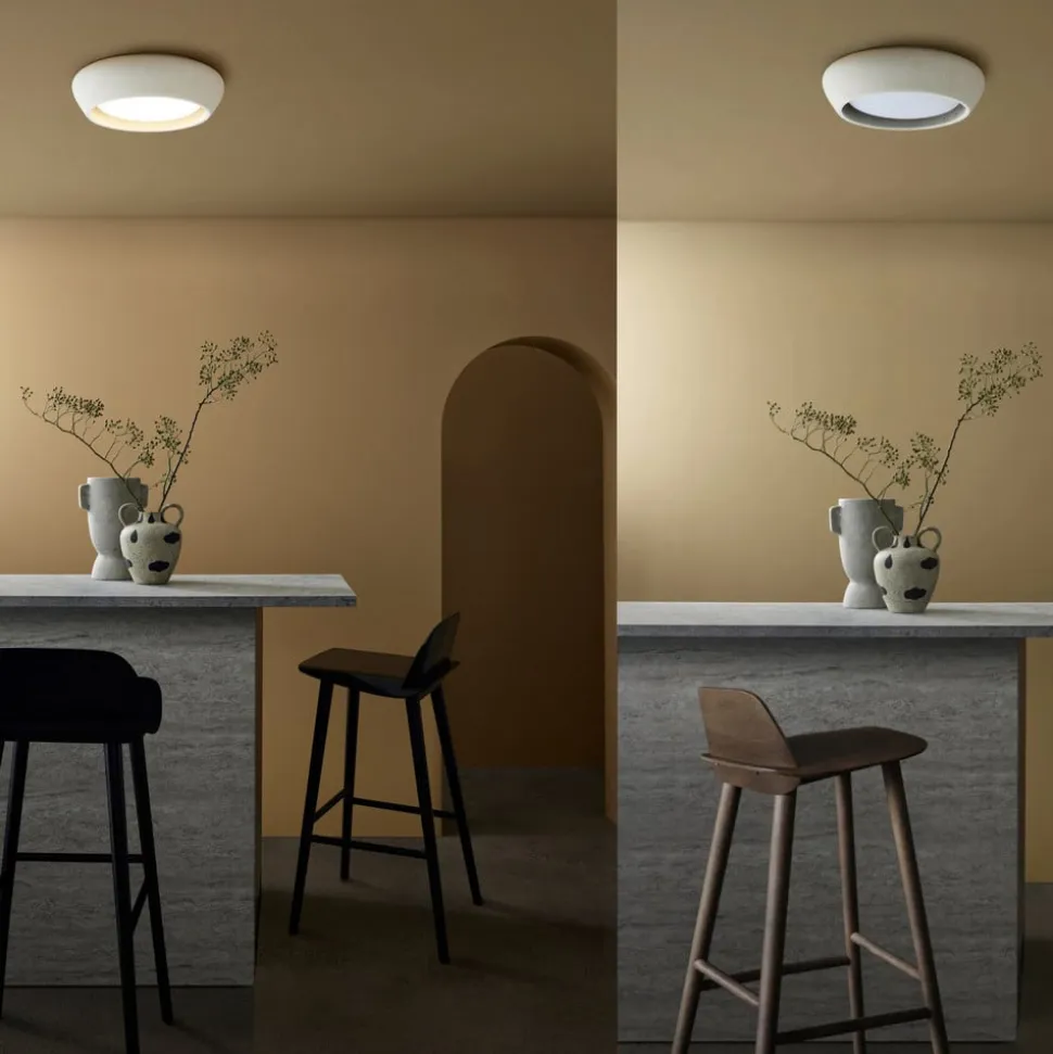 Fjord loftlampe i gips – elegance og fleksibilitet til alle rum Fjord loftlampen kombinerer enkel elegance med funktionel fleksibilitet. Den er fremstillet af gips i høj kvalitet og passer perfekt ind i æstetikken i stuen, soveværelset, gangen eller køkkenet. Muligheden for at regulere lysets intensitet ved hjælp af en ekstern dæmper gør det muligt at tilpasse belysningen til enhver situation. Loftlampen skal monteres med GX53 LED-pærer med en maksimal diameter på 20 cm.