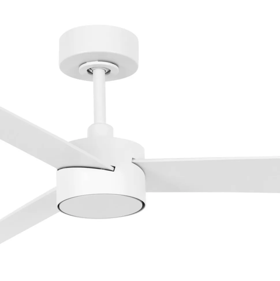 LED-loftventilator Climate IV med tre vinger, DC-motor, inkl. fjernbetjening LED-loftventilatoren Climate IV består af et aluminiumshus og tre vinger lavet af ABS-plast. Den leveres med fjernbetjening (inkl. batterier) og er udstyret med et modul til belysning. Den varmhvide GX53-lampe er udskiftelig og kan dæmpes i tre trin med fjernbetjeningen. Lampen kan dækkes af en medfølgende hætte, hvis det ønskes. Til særligt høje lofter findes en passende og separat tilgængelig forlængerstang (90 cm) via tilbehøret.funktionerClimate IV kan indstilles til 6 hastighedsniveauer, som kan vælges via fjernbetjeningen. En funktion, der efterligner naturlig vind, kan også vælges.Udstyret med sommer- og vinterfunktion (retur): Således hjælper ventilatoren med at fordele varm luft i rummet om vinteren og kan dermed hjælpe med at spare varmeomkostninger.Takket være kugleleddet er den også velegnet til skrå lofter med en vinkel på maksimalt 10 grader.Tekniske egenskaber- Maksimal luftcirkulation: 162 m³/min.- Hastighed pr. hastighed:- 76 o/min. (3 W)- 100 omdr./min.- 120 omdr./min.- 136 omdr./min.- 152 omdr./min.- 178 omdr./min. (35 W)Særlige egenskaber- udstyret med støjsvag DC-motor – også velegnet til soveværelser