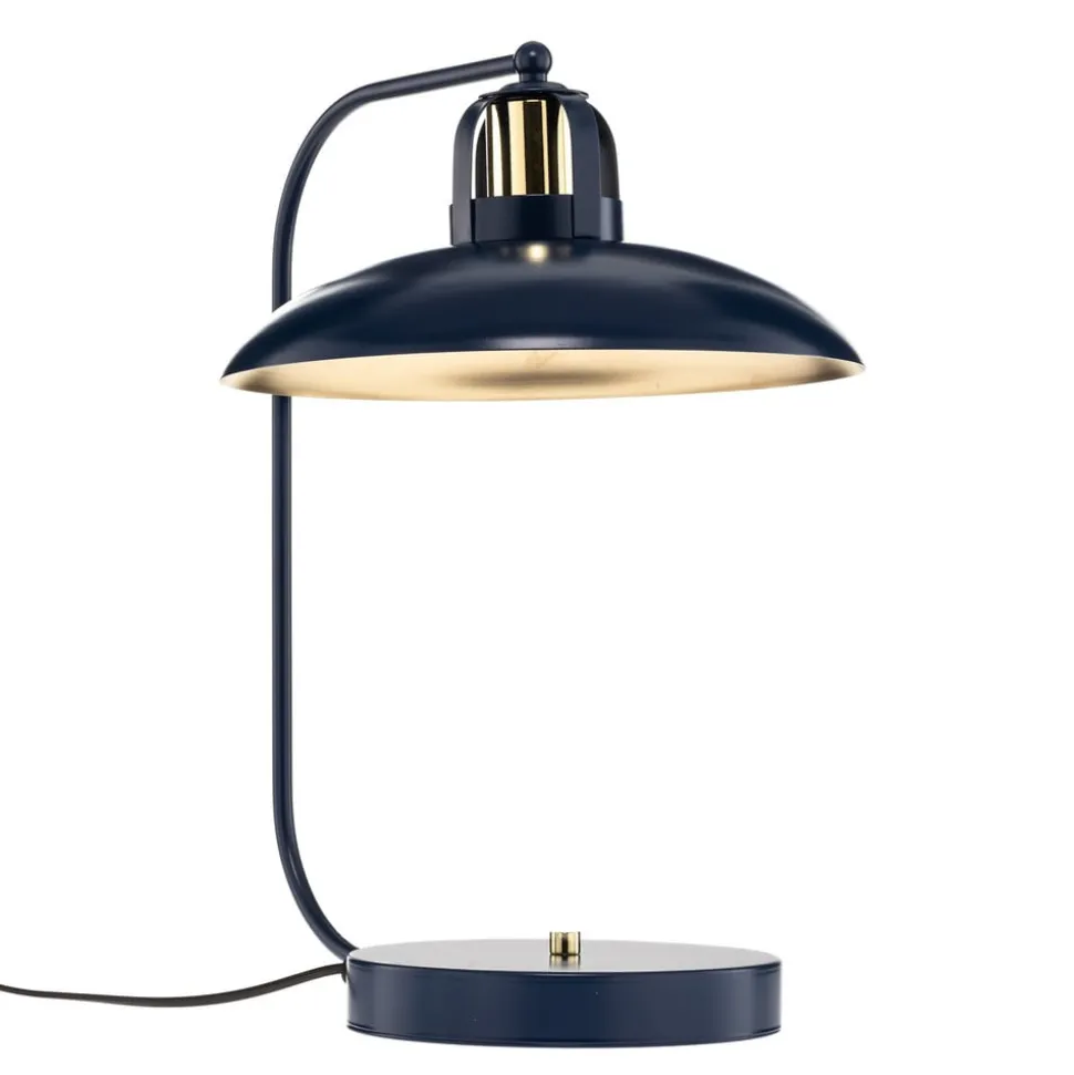 Bordlampen Felix kombinerer industrielt design med en elegant farve i blå og guld. Den er fremstillet af højkvalitetsmetal og udstråler robusthed og stil. Denne lampe er ikke kun et funktionelt belysningselement, men også et æstetisk højdepunkt, der sætter accenter i både stuer og spisestuer.