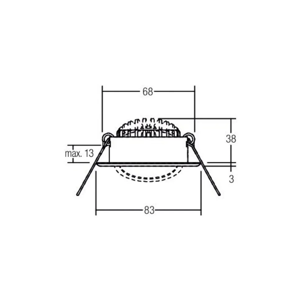 Indbygget LED-spot BB09 med bagkantsdæmpbar driver (RC) Det runde indbyggede LED-spot BB09 er perfekt til kommercielle og offentlige såvel som private interiører, såsom korridorer eller eventlokaler. Den er udstyret med varmhvide LED’er, som sidder i et hoved med en sølvreflektor med rotationssymmetrisk dyb, bredstrålende lysfordeling. Spottet kan drejes 25° hele vejen rundt, så lysstrålen kan rettes mod det ønskede område. LED-indbygningsspot BB09 leveres klar til tilslutning med LED-driver, der kan dæmpes via bagkantfasedæmper, og monteringsfjedre til værktøjsfri loftsmontering – Inklusive LED-konverter; kan dæmpes eksternt via bagkantfasedæmper (RC) – Udstrålingsvinkel: 38° – Drejeområde: 25° hele vejen rundt – Loftstykkelse: maks. 1,3 cm – Må ikke dækkes med varmeisolerende materiale