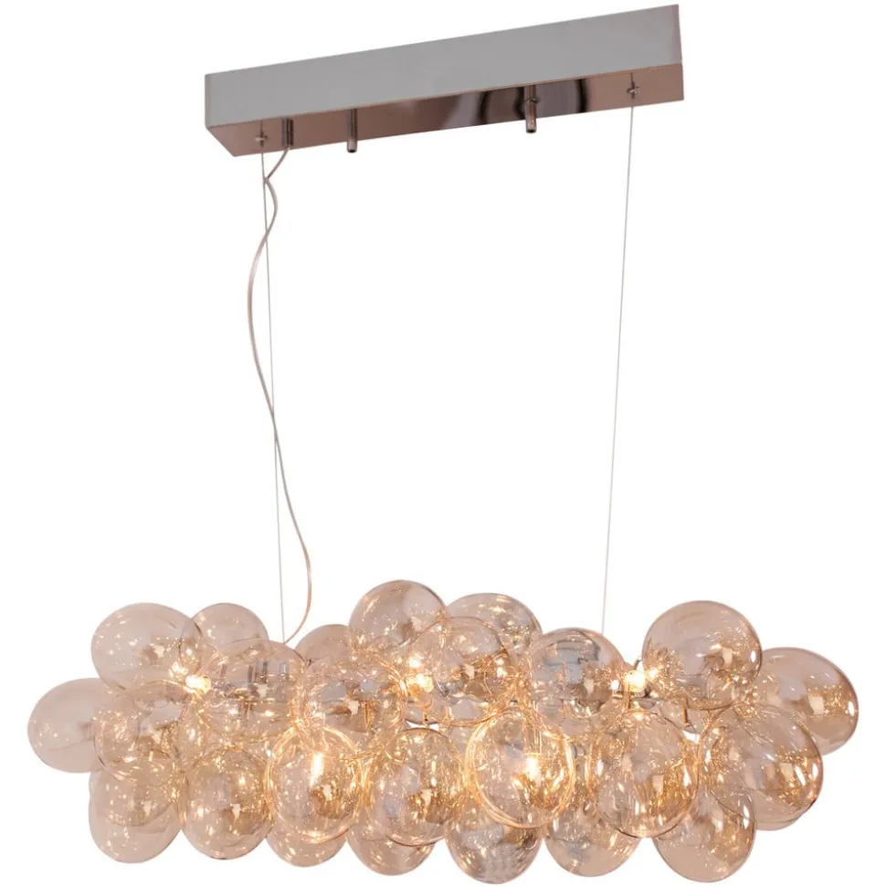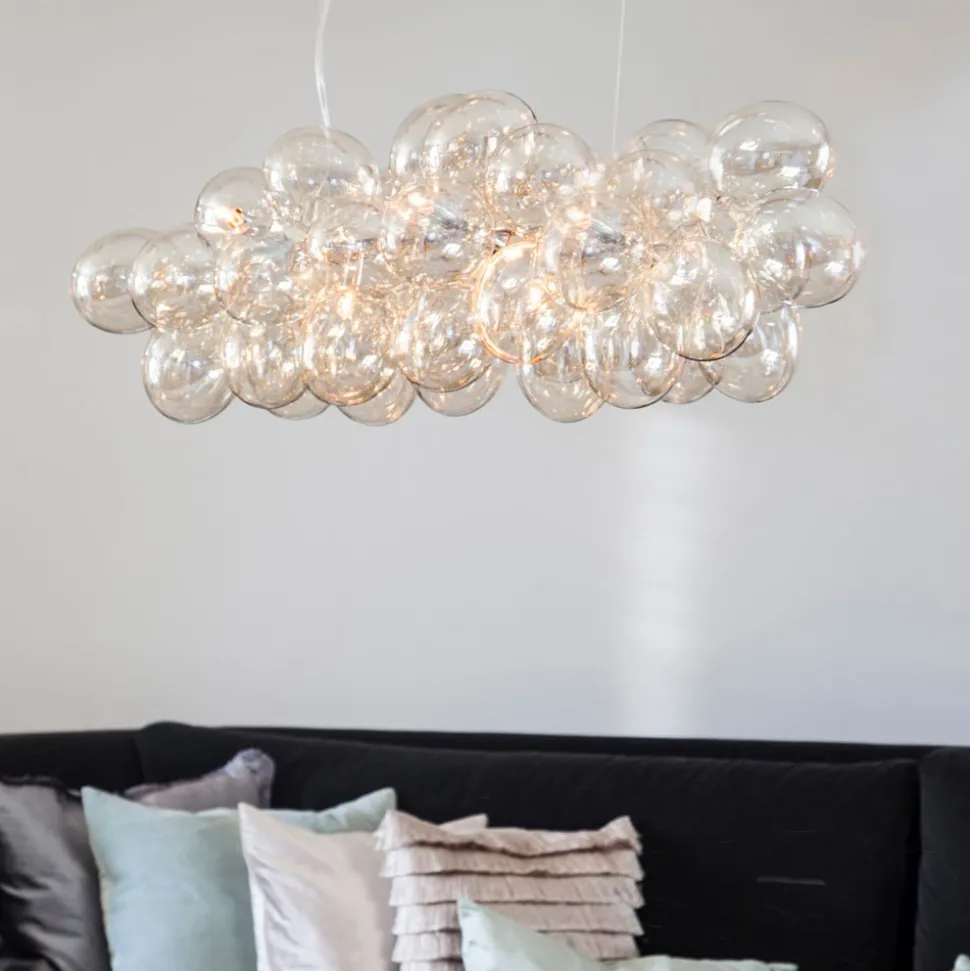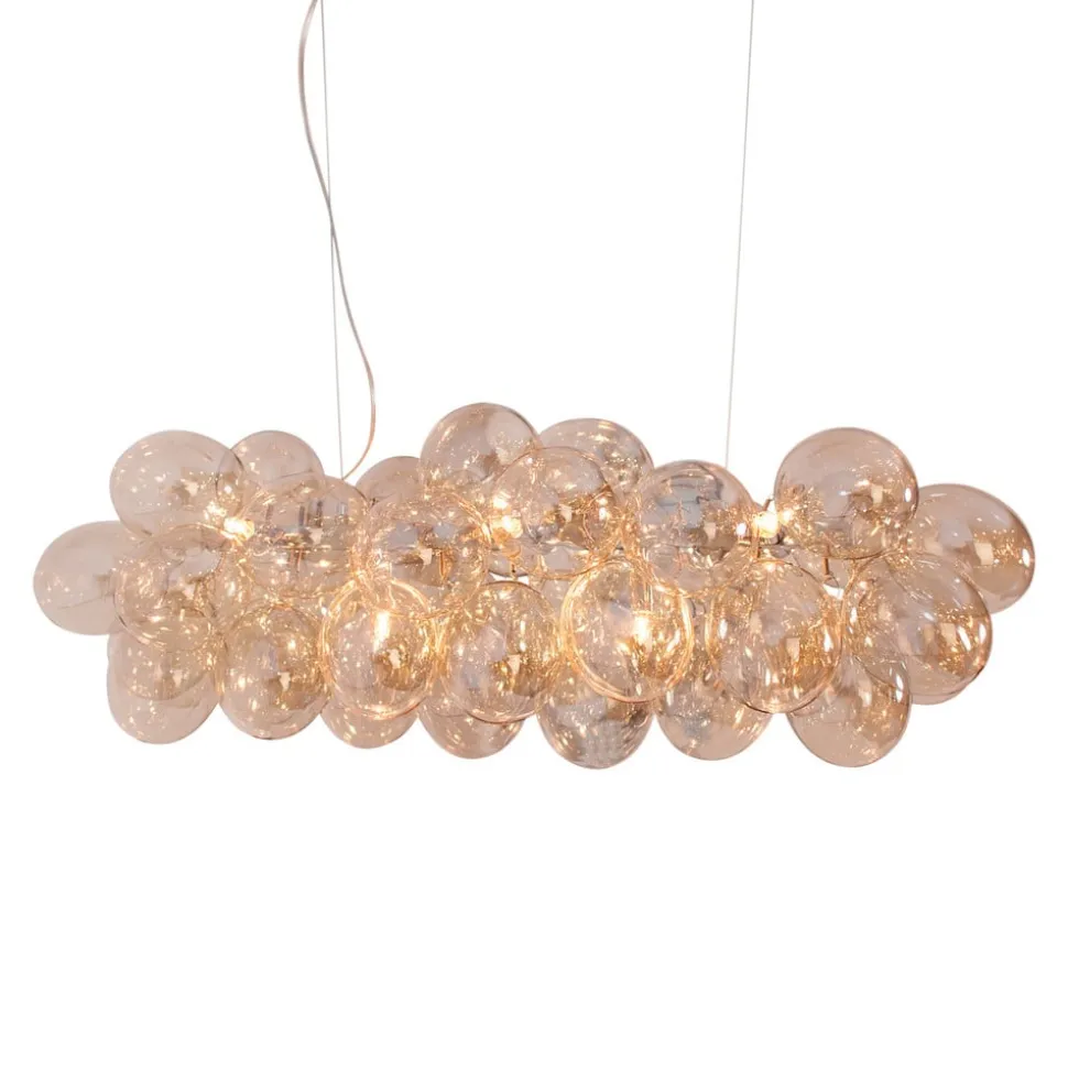 Et antal små glaskugler er blevet kombineret til at danne en skylignende struktur for skyggen af Gross Bar-hængelampen – og derimellem er der altid en lampestik. G9-pærerne (medfølger ikke) i disse sokler giver ikke kun belysning, men også den specielle glans af dette pendellampe. Hvis dette er tændt, skinner glaskuglerne også i lyset.