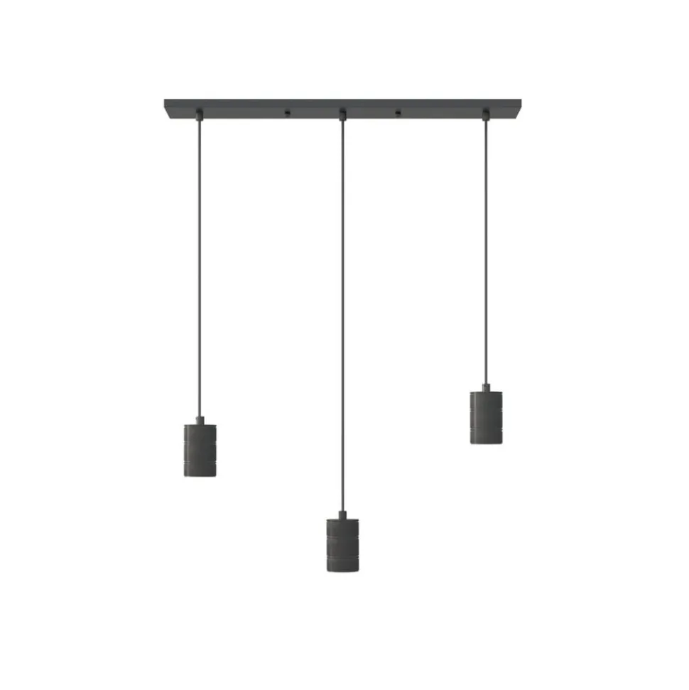 Pendellampe Retro med tre lamper og rektangulær baldakinEn rektangulær baldakin danner grundlaget for pendellampen Retro med tre lamper. De tre åbne fatninger, som er dekoreret med et stribet mønster, er fastgjort til den. De åbne fatninger er særligt velegnede til brug af store lyskilder med synlige glødetråde. Der medfølger to valgfrit anvendelige ringe pr. fatning, som sikrer en plan montering af lyskilderne. Passende E27-pærer kan købes separat via tilbehør.