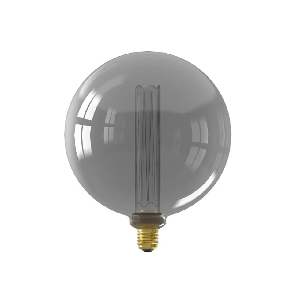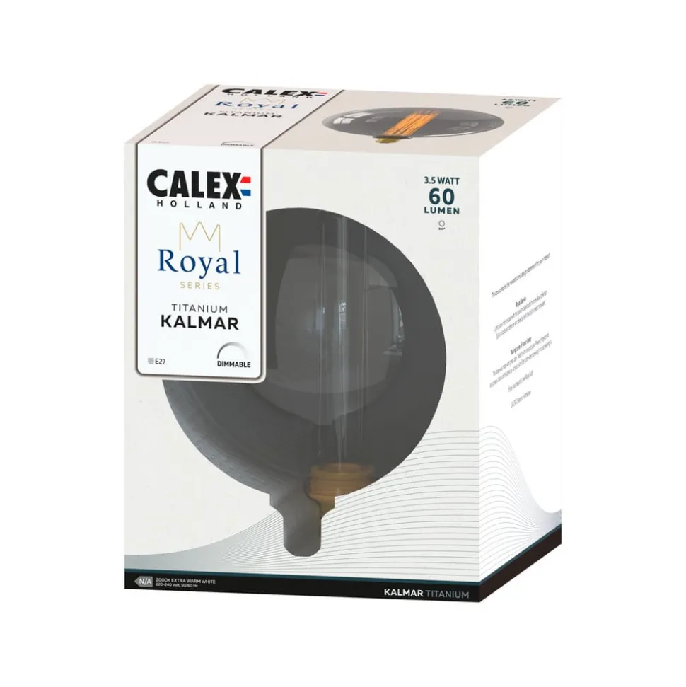 Dæmpbar LED-lampe XXL Royal Kalmar Filament med røggrå nuance, 3,5 W, 2.000 K Elegante filamenter er kernen i Royal Kalmar LED-lampen, Royal-serien er en kollektion af elegante, store lamper, der giver ethvert rum et luksuriøst udseende og følelse. Lamperne i XXL-format har en statelig, lige glødetråd, der giver et smukt lys og passer perfekt til et elegant interiør. Med en særlig varm lysfarve skaber denne elegante lampe en meget behagelig atmosfære. Den røggrå belægning sikrer, at denne moderne E27-lampe passer ind i næsten ethvert interiør. Kalmar er et slående højdepunkt, der kan være omdrejningspunktet i et rum og udstråler en følelse af storhed og raffinement. Med Royal Kalmar eller en af de andre lamper fra Royal-serien fra Calex er du garanteret at give dit interiør et særligt luksuriøst look. – dæmpbar