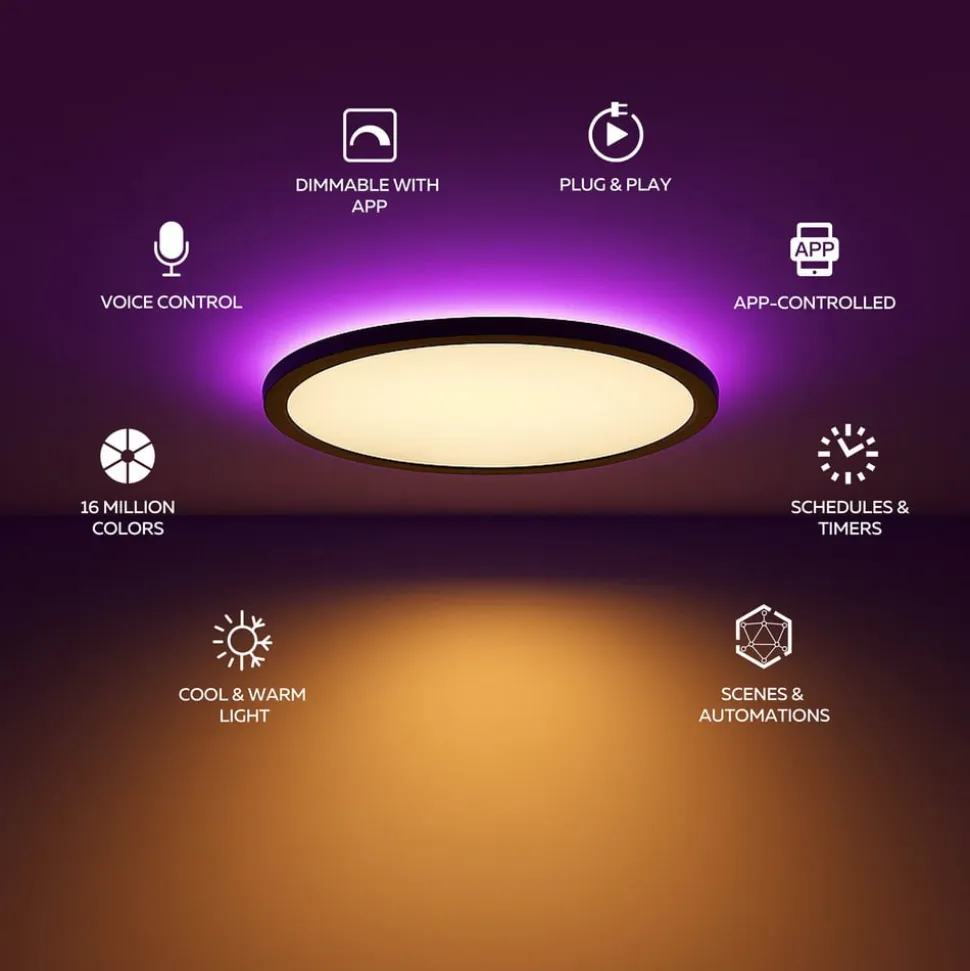 Med understøttelse af WLAN og kompatibilitet med iOS- og Android-apps kan lampen nemt styres og integreres i eksisterende smart home-systemer. Uanset om det er i stuen, spisestuen, gangen, køkkenet eller badeværelset – denne energieffektive LED-loftlampe skaber en individuel lysstemning og sætter stilfulde accenter i ethvert rum. Det højkvalitative polypropylenmateriale understreger holdbarheden og kvaliteten af dette alsidige belysningselement.