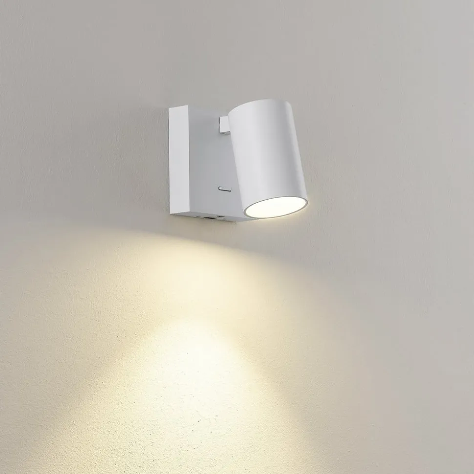 CAN TILT vægspot, hvid, 10 x 10 cm, metal, kontakt, USB