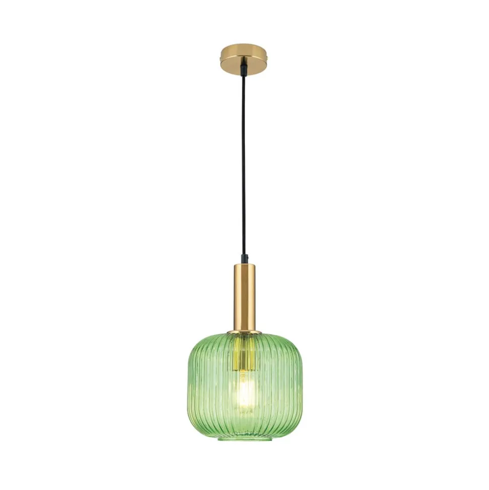 Carneval pendellampe, antik messing/grøn, Ø 20 cm, glas