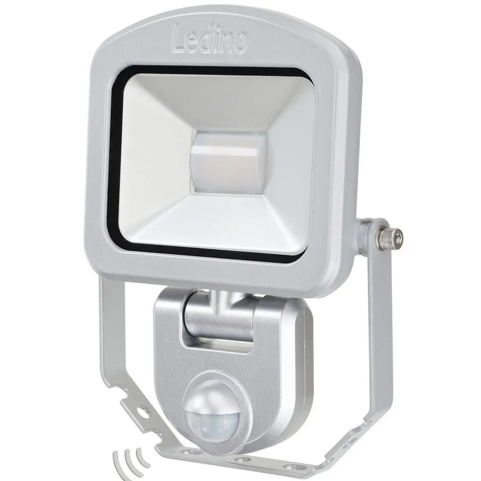 Sølv LED udendørs spotlight Charlottenburg lavet af støbt aluminium med IR-sensor
