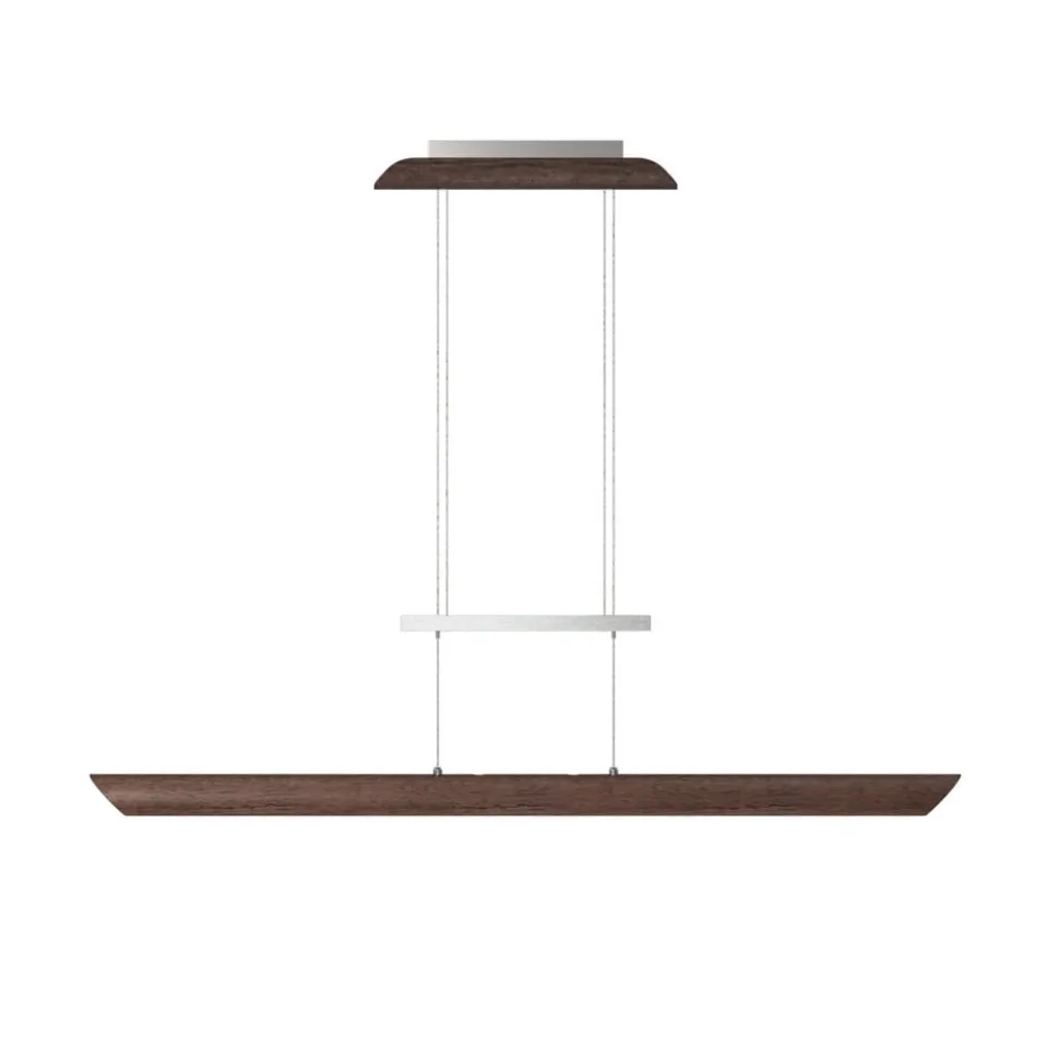 Det moderne og tynde LED-pendellampe Colombia S er fremstillet i Tyskland. Den består af et elegant design, der kombinerer træ med moderne LED-teknologi. baldakin og lampeskærmen er lavet af naturstøbt træ. De nedadgående lysdioder kan ændres i farvetemperatur over tre niveauer fra en varm til kølig skygge og kan også dæmpes. Dette gøres meget let ved hjælp af to separate berøringsafbrydere, der er placeret direkte på lampeskærmen. Colombia S er ideel til belysning over borde og kan let justeres i højden. En enkel mekanisme gør det muligt at justere lampen fra 80 til 160 cm, mens lampen er i drift.