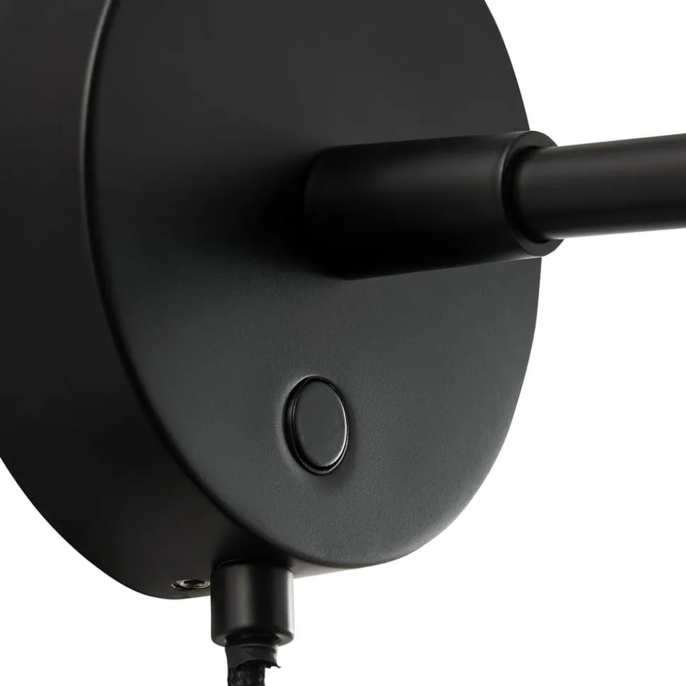 Sort Darci kort væglampe med afbryder Darci-væglampen er fremstillet af solide materialer af høj kvalitet. Takket være dreje- og vippeleddet kan den nemt justeres og drejes 350° og vippes 90°. Tænd/sluk-kontakten er placeret direkte på vægbeslaget, og den er også udstyret med et kabel og et stik, så den kan monteres fleksibelt i nærheden af en stikkontakt. Darci er perfekt til soveværelset