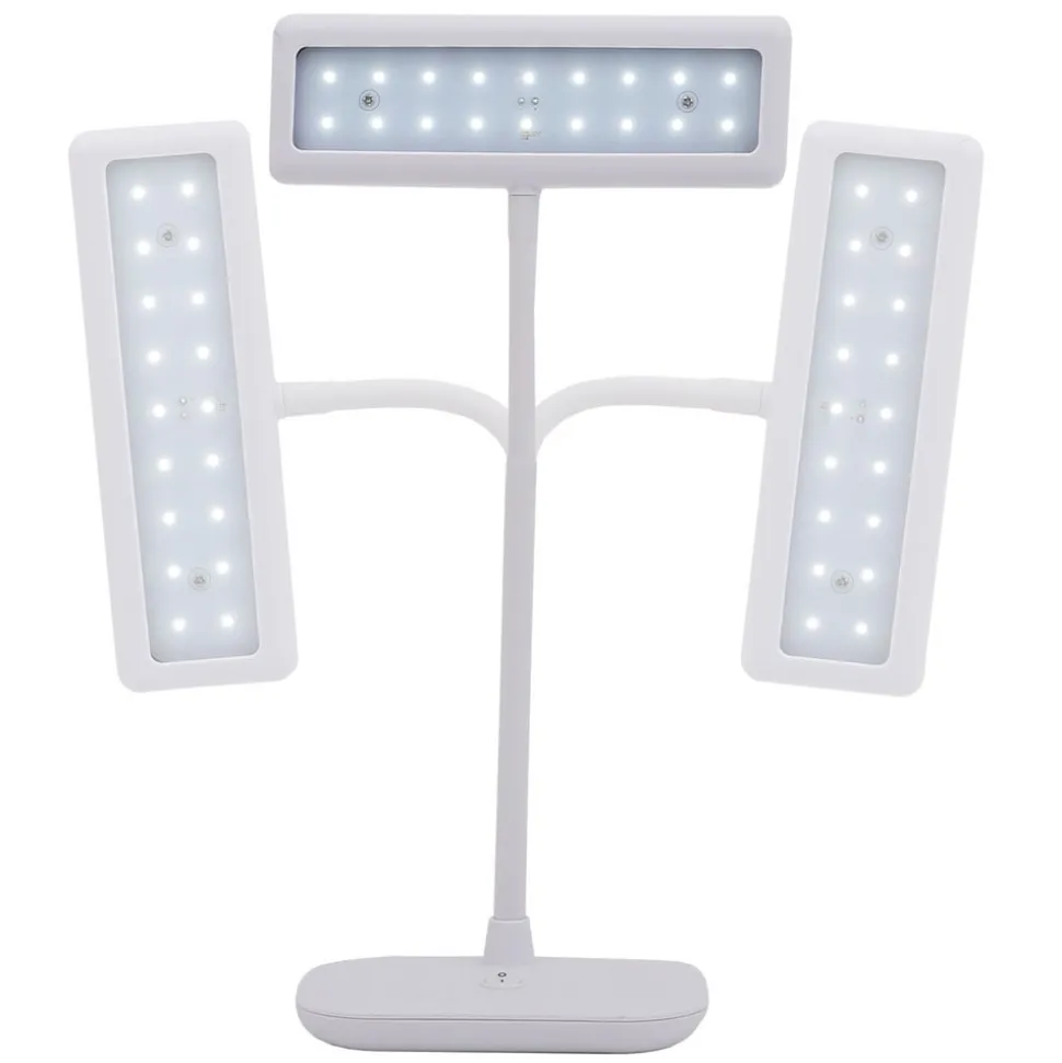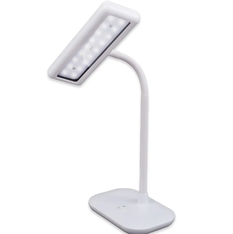Hvid LED-dagslyslampe Daylight af plast I et enkelt, moderne design giver LED-dagslyslampen Daylight behageligt lys på alle tidspunkter af dagen. Takket være det hvide farveskema kan lampen nemt kombineres med ethvert interiør – hvilket gør den til det rigtige valg til ethvert skrivebord. Den praktiske lampe i hvid plast ender i en bred og stabil base. Tænd/sluk-kontakten er også placeret på soklen, så lampen kan betjenes individuelt og nemt. Takket være det store lampehoved, som harmonerer med resten af designet, giver lampen altid tilstrækkeligt dagslys.