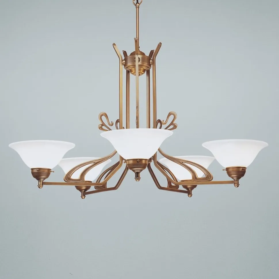 Den elegante lysekrone Richard udstråler en unik charme Richard-lysekronen repræsenterer klassisk elegance i sin reneste form. Dette vintagearmatur af høj kvalitet viser, at moderne armaturer også kan være inspireret af fortiden. Fadderne til dette armatur er de modeller, der var på mode omkring år 1900. Richard er en lysekrone med fem flammer lavet af berlinermessing og mundblæst glas. Derfor er dette armatur af særlig høj kvalitet. De anvendte materialer ser dog ikke kun særligt ædle ud, men er også ekstremt lette at rengøre. Til rengøring af denne lampe er der kun brug for en tør klud.