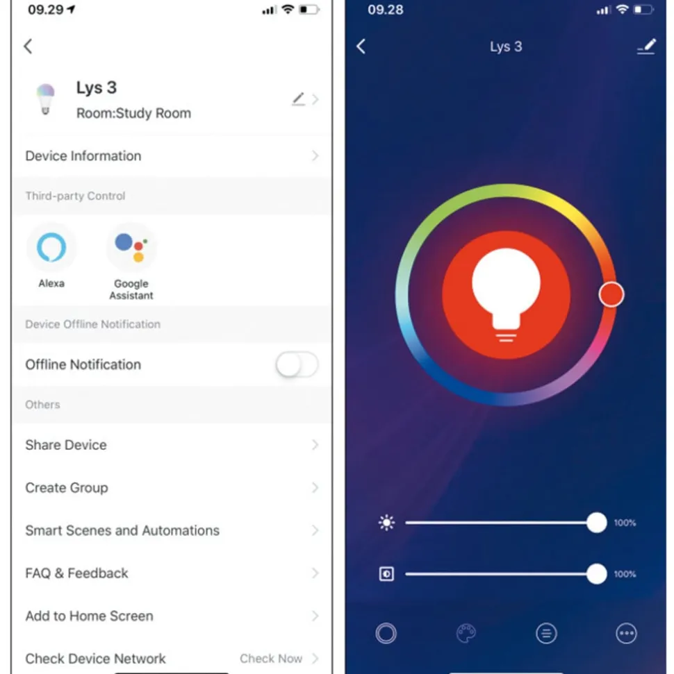 Fra afslappet belysning om aftenen til det rigtige lys til koncentreret arbejde og farverig stemningsbelysning til en fest – denne GU10 LED-lampe fra Denver er en mester i alsidighed. Lysstyrken og lysfarven kan ikke kun styres direkte via appen eller stemmekommando, men også blandes via appen i de ønskede graderinger som scener, der kan kaldes op senere. Det er også muligt at opstille tidsplaner for automatisk styring. Integrationen sker direkte via WLAN, uden gateway/bro.