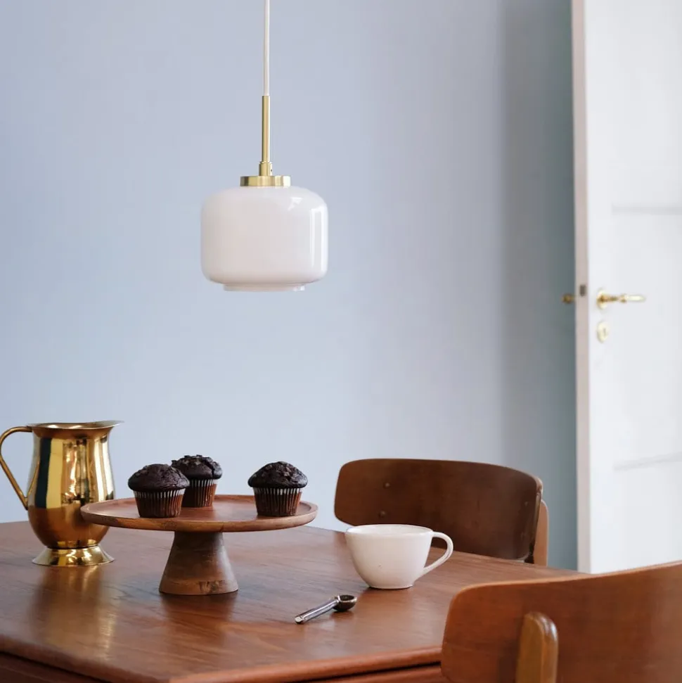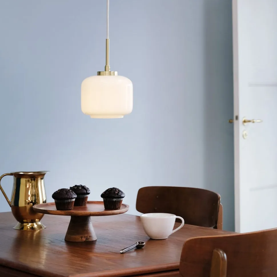Arp hængelampe med messingfarvet ophæng og stor glasskærm Arp hængelampen kombinerer skandinavisk design med et strejf af elegance og skaber en atmosfære, der er både inspirerende og hyggelig. Dens messingfarvede krop og glasdesign i høj kvalitet gør den til et blikfang i enhver stue, spisestue eller køkken. Selvom der ikke medfølger en dæmper, kan lampen nemt tilsluttes en ekstern dæmper for at regulere lyset efter individuelle præferencer.