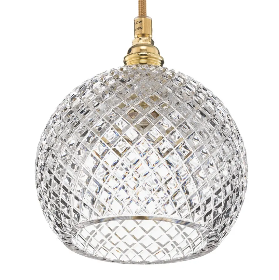 Hængelampe Rowan med krystalglas og guldkontrast
