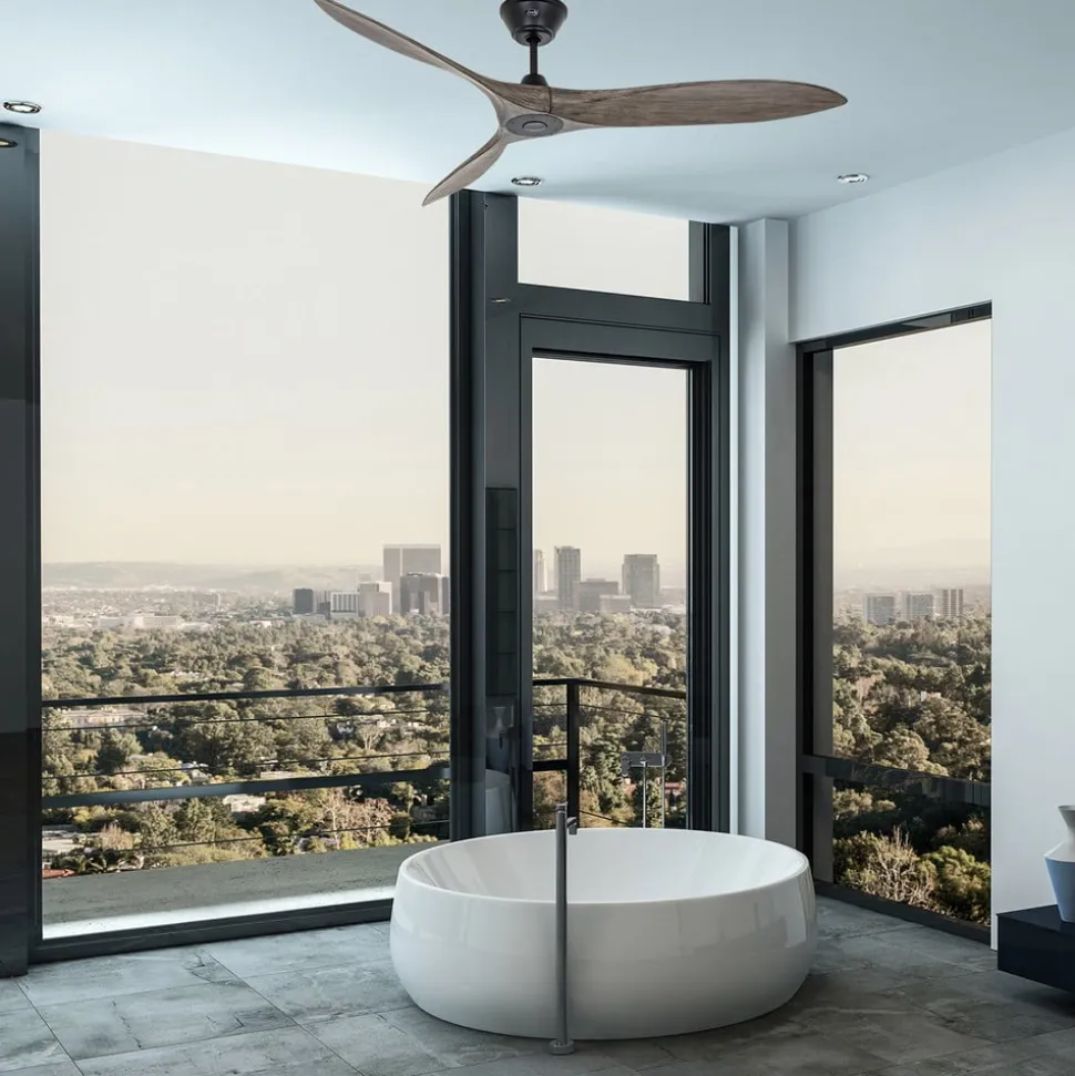 Træloftventilator Eco Airscrew med propellook Fans af historisk flyvning vil blive begejstrede ved synet af Eco Airscrew-loftventilatoren. Bladene er lavet af ældet træ, og deres karakteristiske form minder om gamle propelflyvemaskiner. Loftventilatoren, som er særligt velegnet til store rum og altid kører stille, er funktionelt i tråd med tiden. Funktioner Seks hastighedsniveauer giver dig mulighed for at vælge den rigtige hastighed til situationen. Tanken om energieffektivitet er realiseret med den patenterede DC-motor og reverse-funktionen. Sidstnævnte omfordeler den varme luft om vinteren for at reducere varmeomkostningerne. Alle indstillinger kan styres med den medfølgende fjernbetjening, som der medfølger et vægbeslag til. Tekniske data – Kan også installeres på skråninger op til 16° – Motor med energibesparende, patenteret DC-teknologi – Vægt: 7 kg Effekt pr. hastighed: – 3,2 W ved 49 o/min – 3,6 W ved 58 o/min – 4,9 W ved 78 o/min – 6,8 W ved 94 o/min – 10,4 W ved 121 o/min – 16,1 W ved 149 o/min