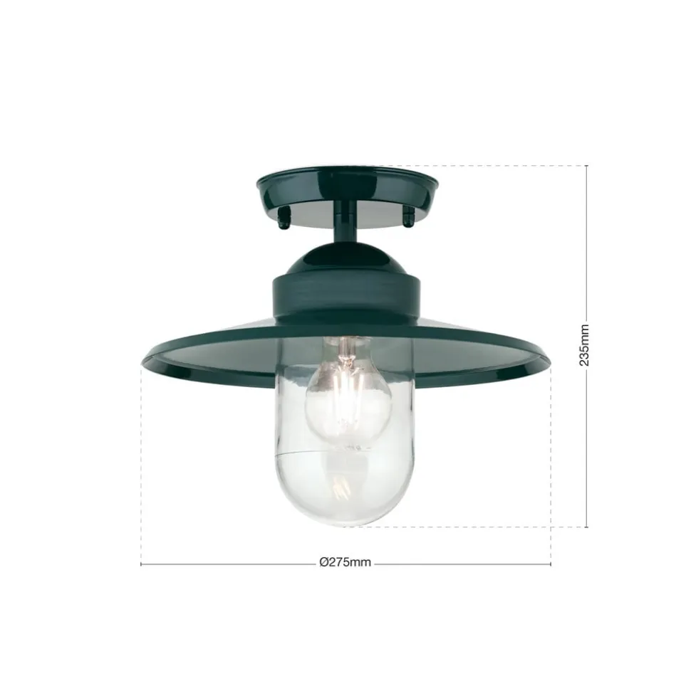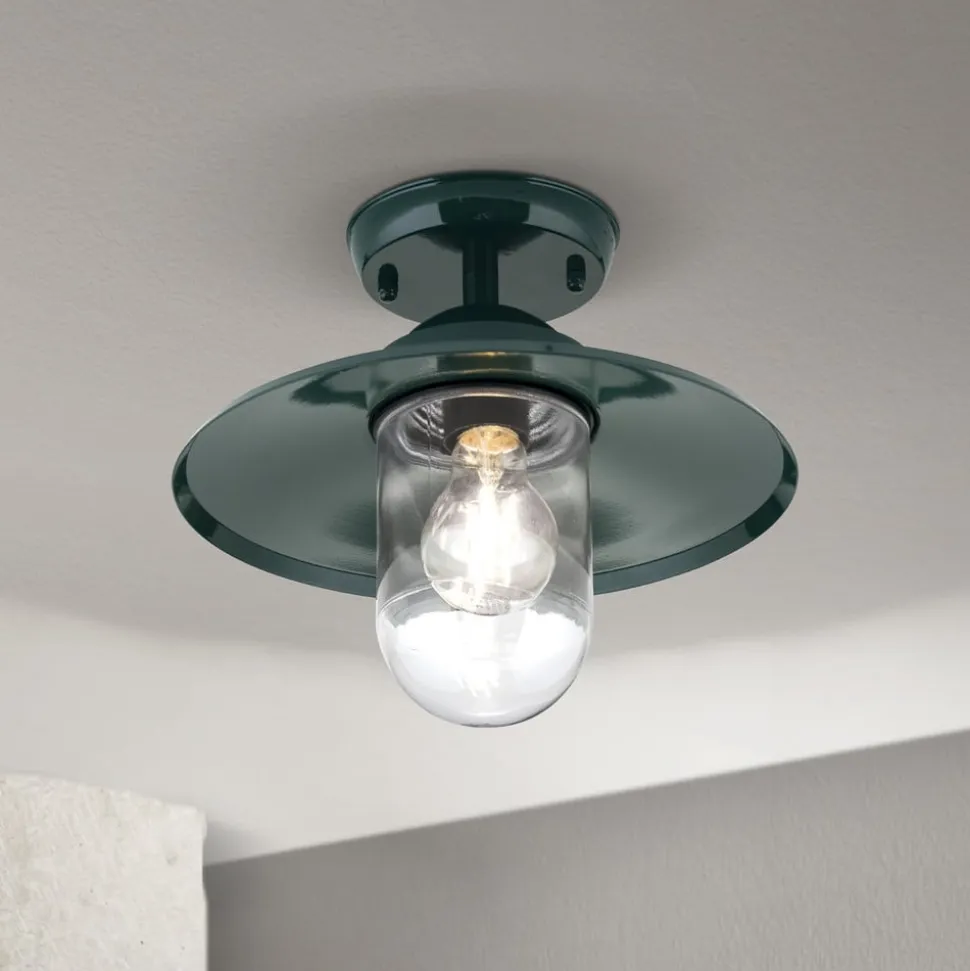 Edward udendørs loftlampe, grøn, Ø 27,5 cm, aluminium/glas