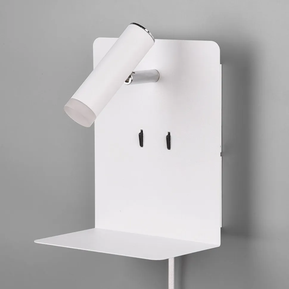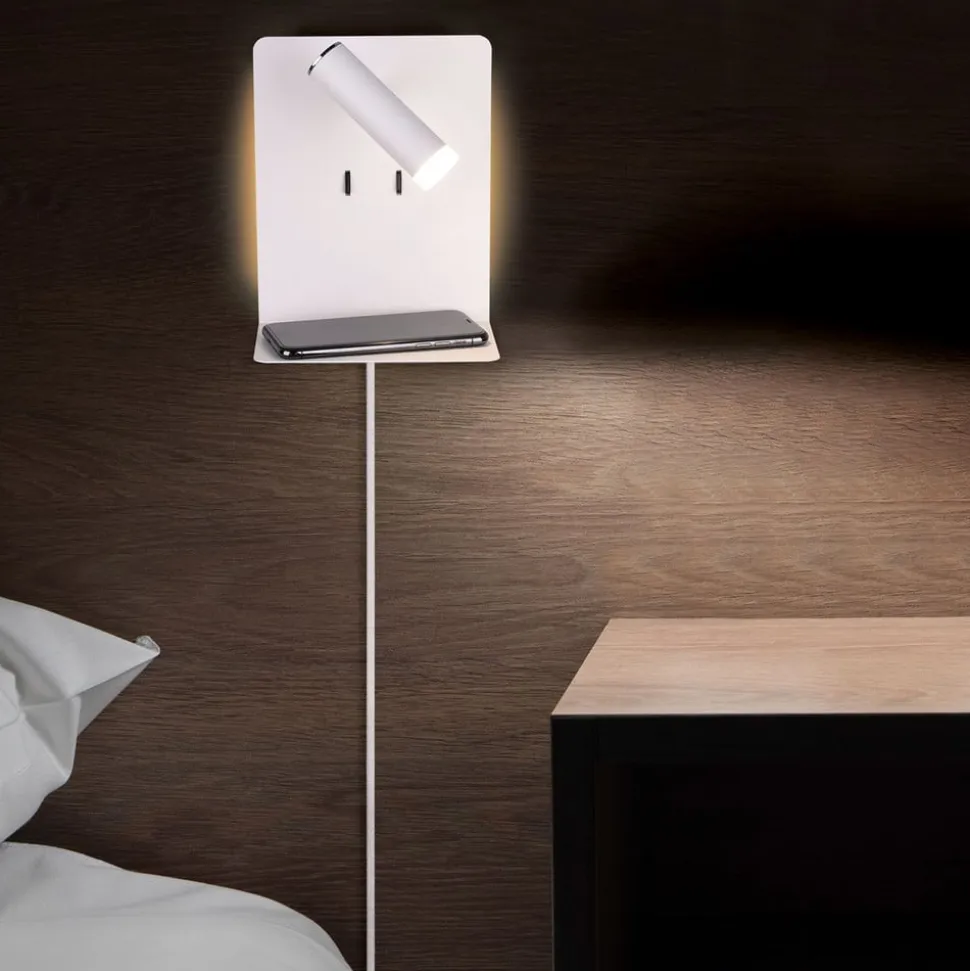 LED-væglampen Element har en justerbar spot- og hyggelig baggrundsbelysning, hvor begge lysvarianter kan skiftes separat med to afbrydere. Væglampen med hylde er også udstyret med en USB-port, så mobiltelefoner kan opbevares og oplades på samme tid. Den moderne LED-væglampe Element er udstyret med et kabel med stik, så den kan tilsluttes til en stikkontakt. Hvis kablet er fjernet, kan det også tilsluttes direkte til stikkontakten ved hjælp af Flex-Connect. Element er en ideel lyskilde til montering ved sengen.