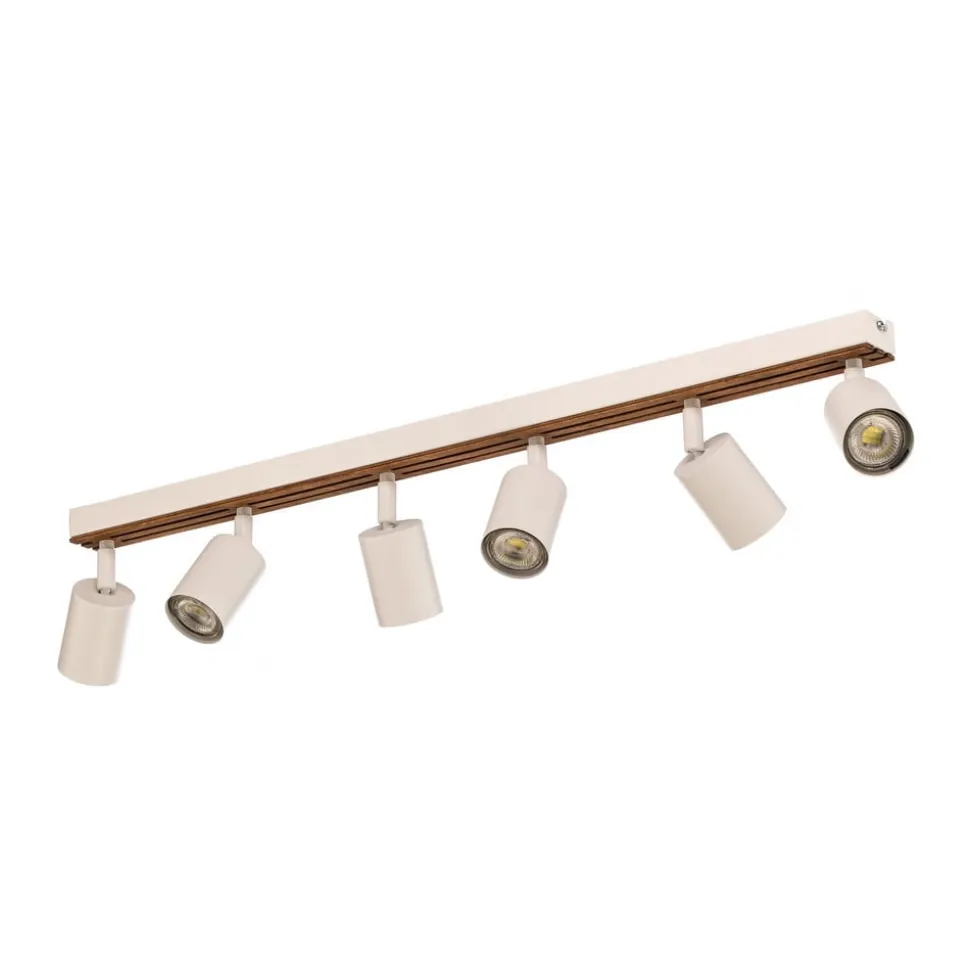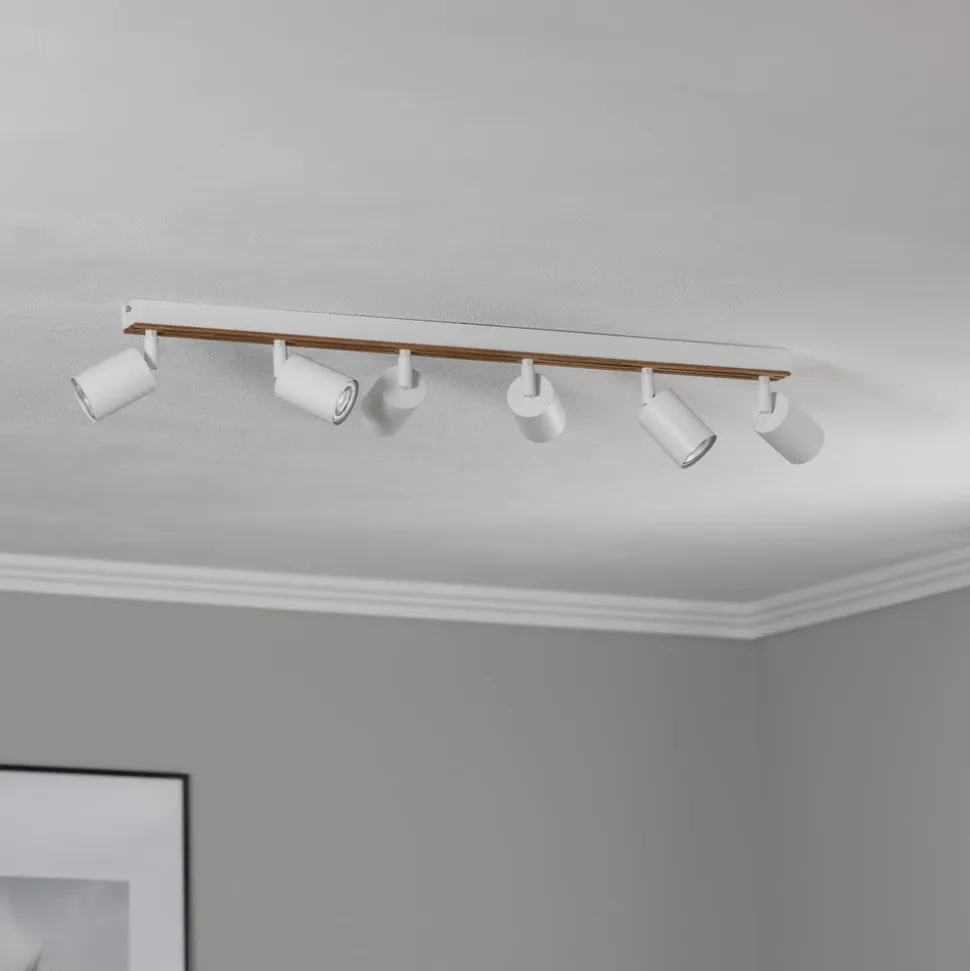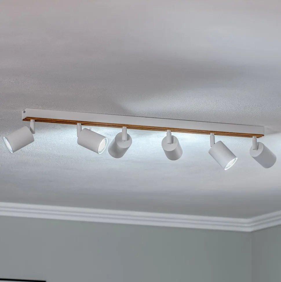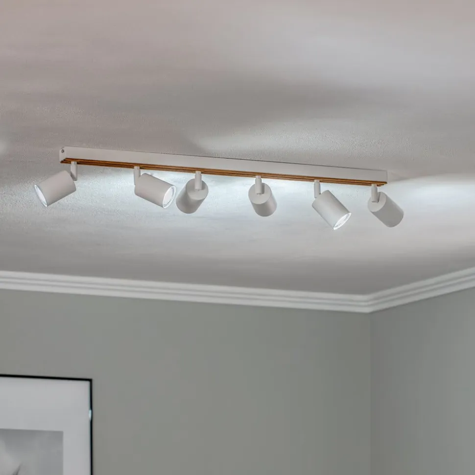 Envostar Tino loftspot forener elegancen af hvidt stål med den naturlige varme fra lyst træ. Denne lampe med 6 lyskilder er en fleksibel belysningsløsning til forskellige boligområder som stuer, entreer og soveværelser. Muligheden for dæmpning via en ekstern dæmper gør det muligt at tilpasse lysintensiteten individuelt for at skabe den ønskede atmosfære.