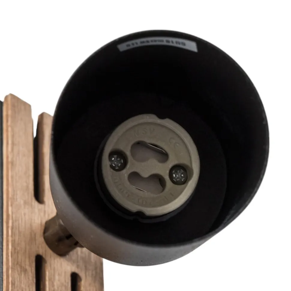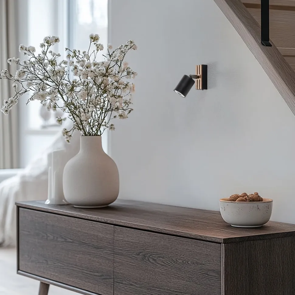 Envostar Tino vægspot forener stilfulde materialer med funktionelt design. Fremstillet af højkvalitetsstål og lyst træ passer denne spotlight perfekt ind i forskellige boligområder som stuen, entreen og soveværelset. Kombinationen af sort finish og naturlige træelementer giver ethvert rum en tidløs elegance. Takket være muligheden for at styre spotlightet via en ekstern dæmper kan lysintensiteten tilpasses individuelt for at skabe den ønskede atmosfære.