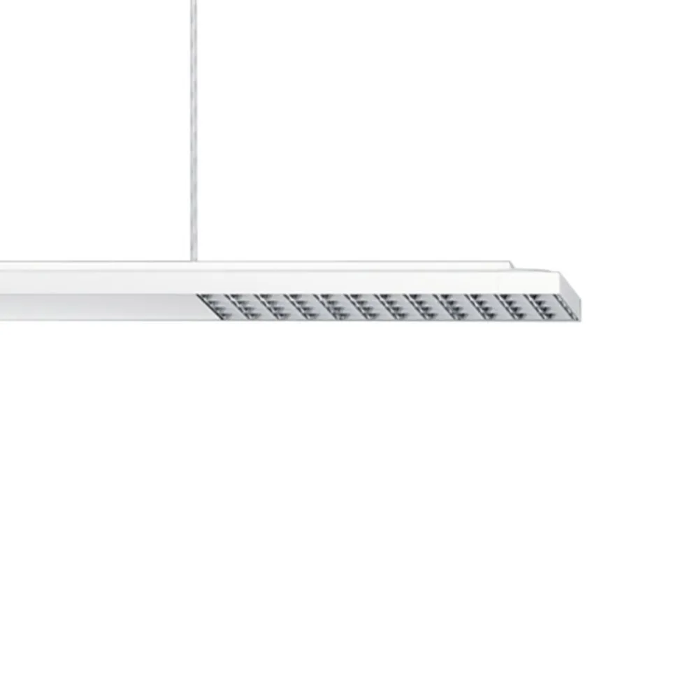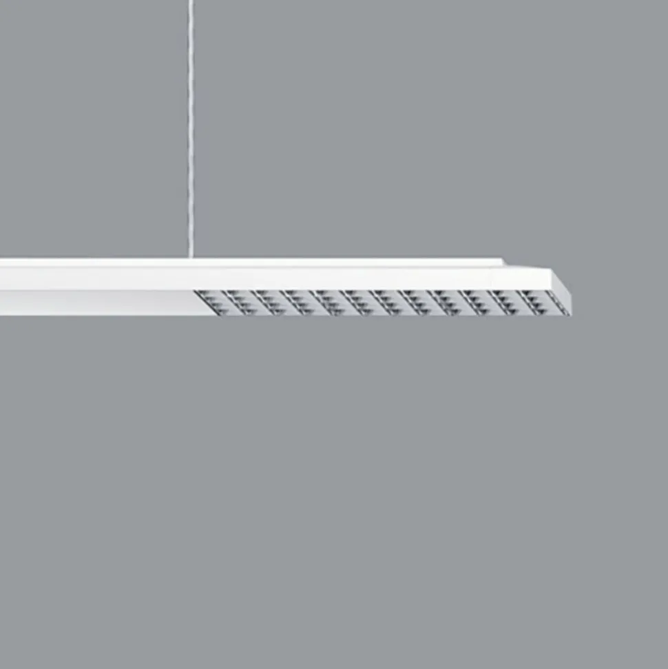 LED kontorpendelarmatur Jilly fra ERCO med direkte og indirekte lys – oval wide flood, DALI-dæmpbar, sølvfarvet gitter